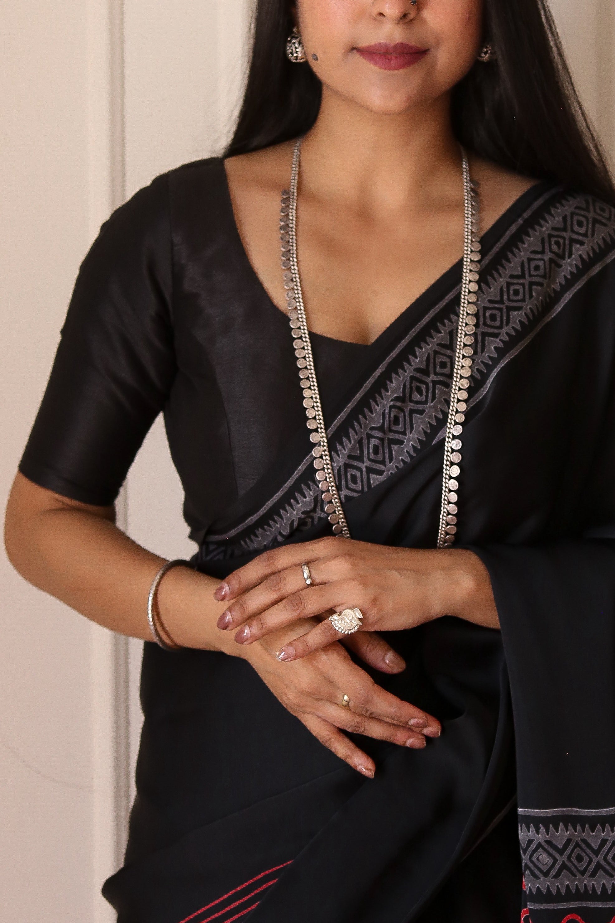 2 reviewsBlack Art Silk Sleeveless Blouse