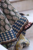 All of Gray and Green Store's products are handcrafted using the natural fibres. The subtle variations in color, texture & finish are the signature of the human hand. Creating each product is a lengthy process rooted in the crafts-based traditions of wood block printing, dying & embroidery, each with its own specialty and character. We use both vegetable dyes and commercial dyes with the goal of minimizing our impact on the environment while striving for the best color properties.