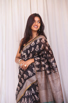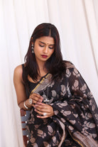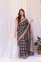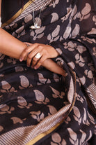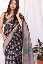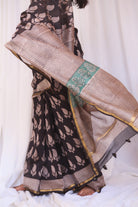Neelrekha : Black Chanderi Saree with mint highlight (Bagru Handblock)