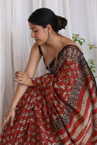 Black Over Clay: Madder & Black Bagru Handblock Chanderi Saree