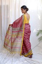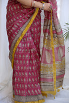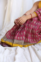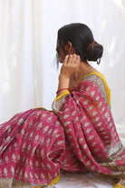 Charu : Pink Ambi Bagru Handblock Chanderi Saree with Yellow Border