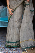 The Black Checked Bagru Handblock Print Kota Doria Saree combines traditional Bagru handblock printing with a modern check pattern. The soft, airy fabric and muted tones make it a versatile addition to your wardrobe.