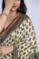 Leena : Ivory Chanderi Saree with Small Ambi Bootis