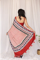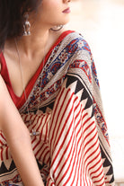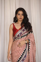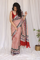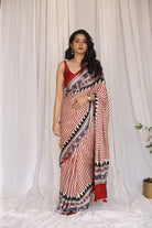 Light Between Lines: Madder Striped Bagru Ajrakh Modal Silk Saree