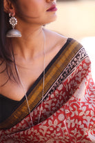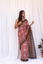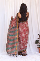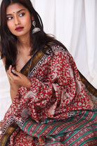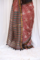 Noorjaal : Madder Maheshwari Saree with Green Pallu (Bagru Handblock)