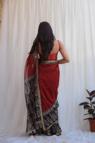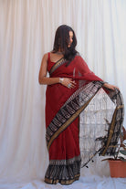 Mehroob : Madder Maheshwari Saree with beautiful motifs (Bagru Handblock)
