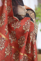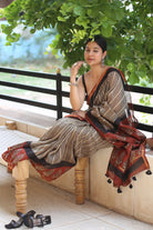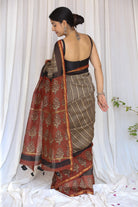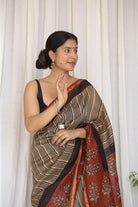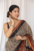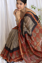 Of Clay and Court: Mughal Border & Striped Bagru Handblock Chanderi Saree