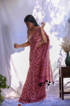 Look hot to trot in this stunning pink blockprint saree! Crafted from a unique blend of Chanderi Silk and Cotton, and hand block printed with Bagru Ajrakh craft, this gorgeous garment will have you catching eyes wherever you go. Slip it on and be the belle of the ball!