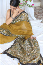 Shobhna : Dark Mustard Bagru Handblock Chanderi Saree