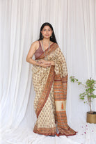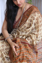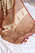 Tushaari : Ivory Chanderi Saree with Orange Brown Bagru Handblock Booti