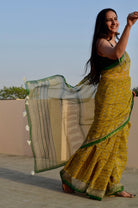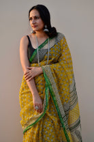 Yellow Bagru Print Kota Doriya with Zari Border
