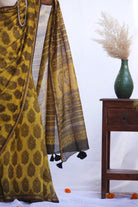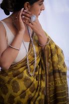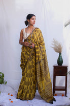 Add a pop of color to your wardrobe with our Yellow Blockprint Saree! Made with luxurious Chanderi silk and soft cotton, this saree features a hand block print in the traditional Bagru Ajrakh craft. The stunning mustard color and zari border add a touch of elegance. Includes a 5.5 mtr saree and 80-90 cm blouse. (Sari not sorry, it's a must-have!)