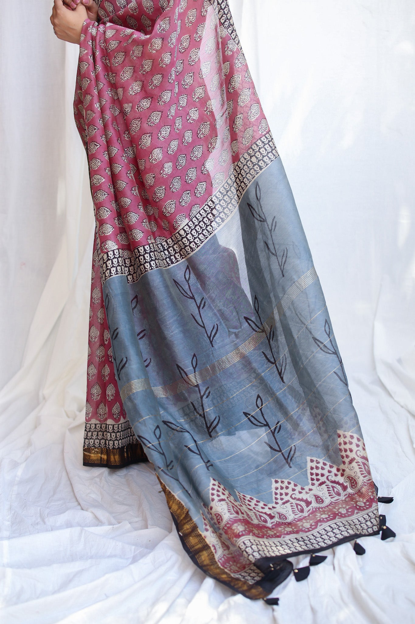Intricate Patterns: The detailed designs and patterns of Bagru prints are achieved through meticulous block carving and printing. The combination of intricate motifs and precise block alignment results in visually stunning textiles.