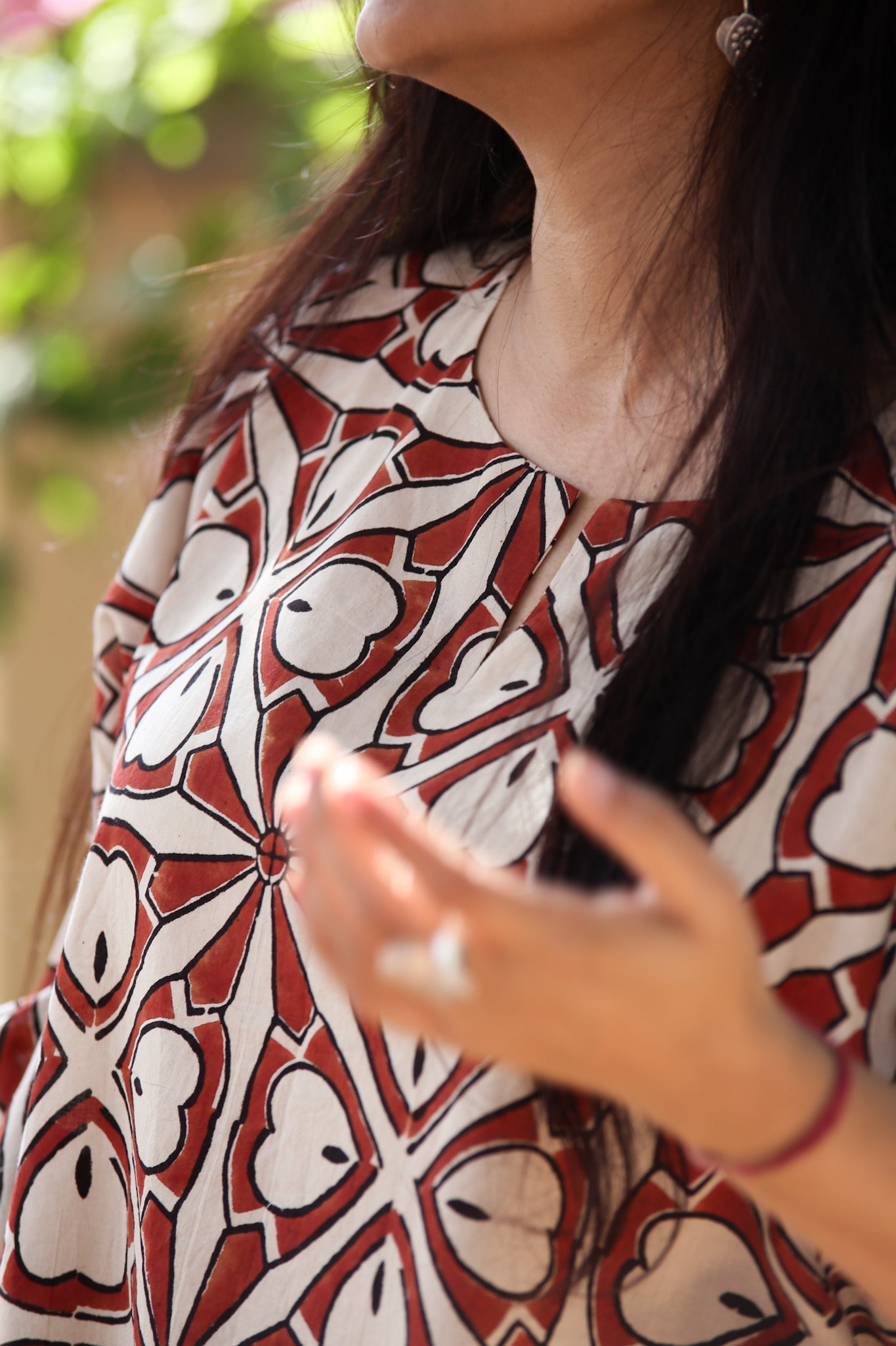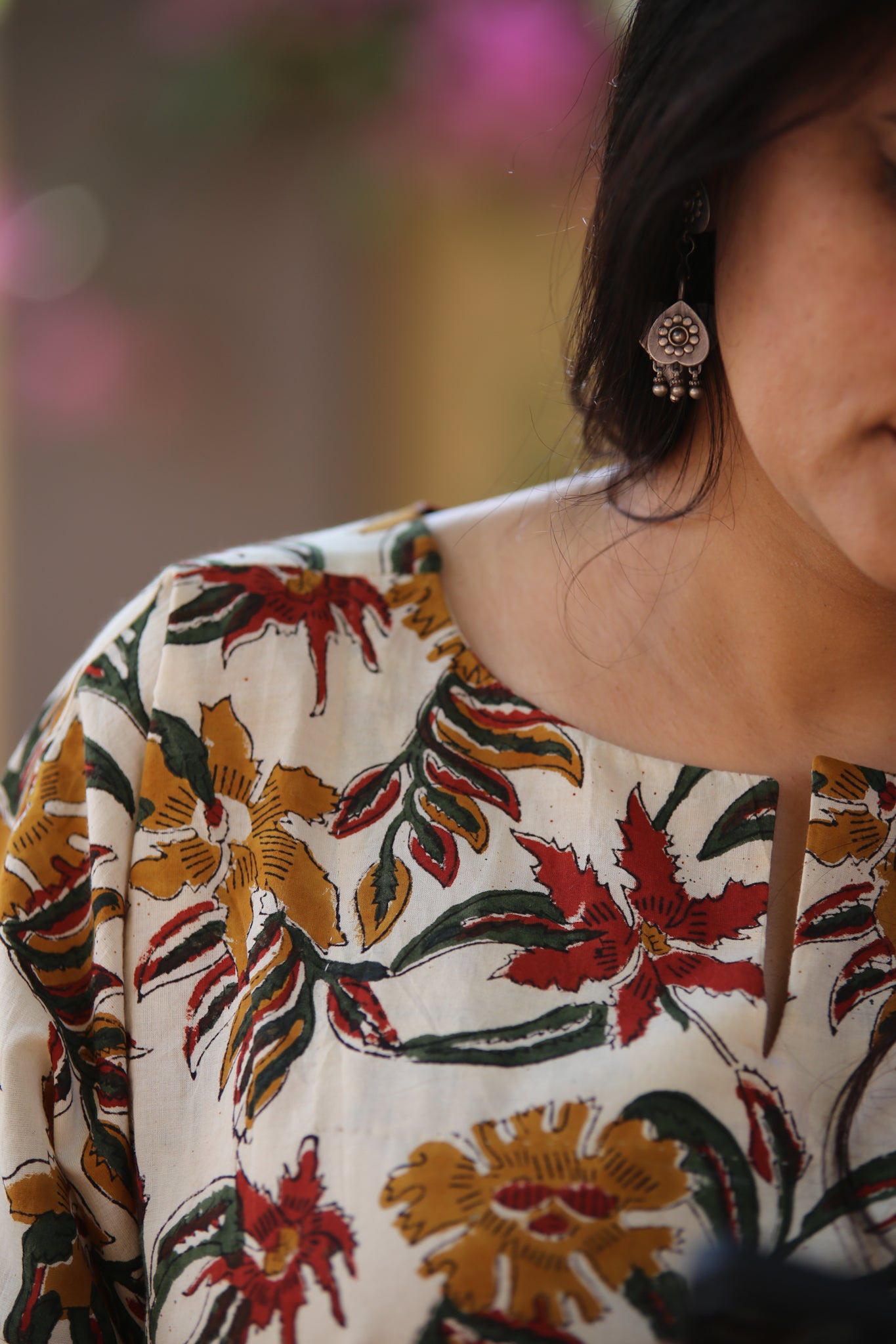 Fabric Preparation: The process starts with selecting high-quality cotton fabric. The fabric is pre-washed and treated with natural mordants to prepare it for dyeing and printing. This step ensures that the fabric absorbs the dyes evenly.