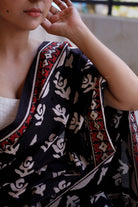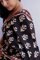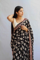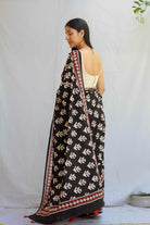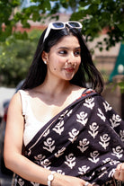 Rosey: Black Handblock Rose Printed Saree