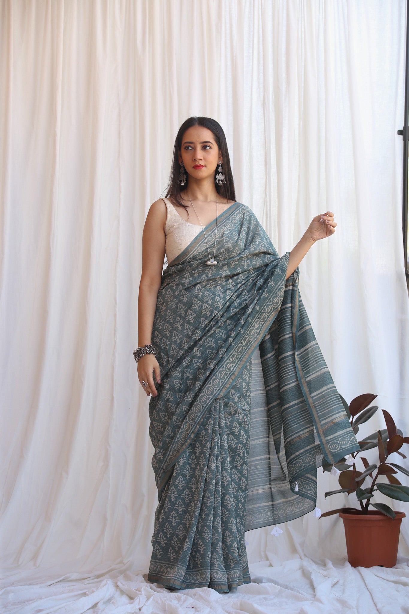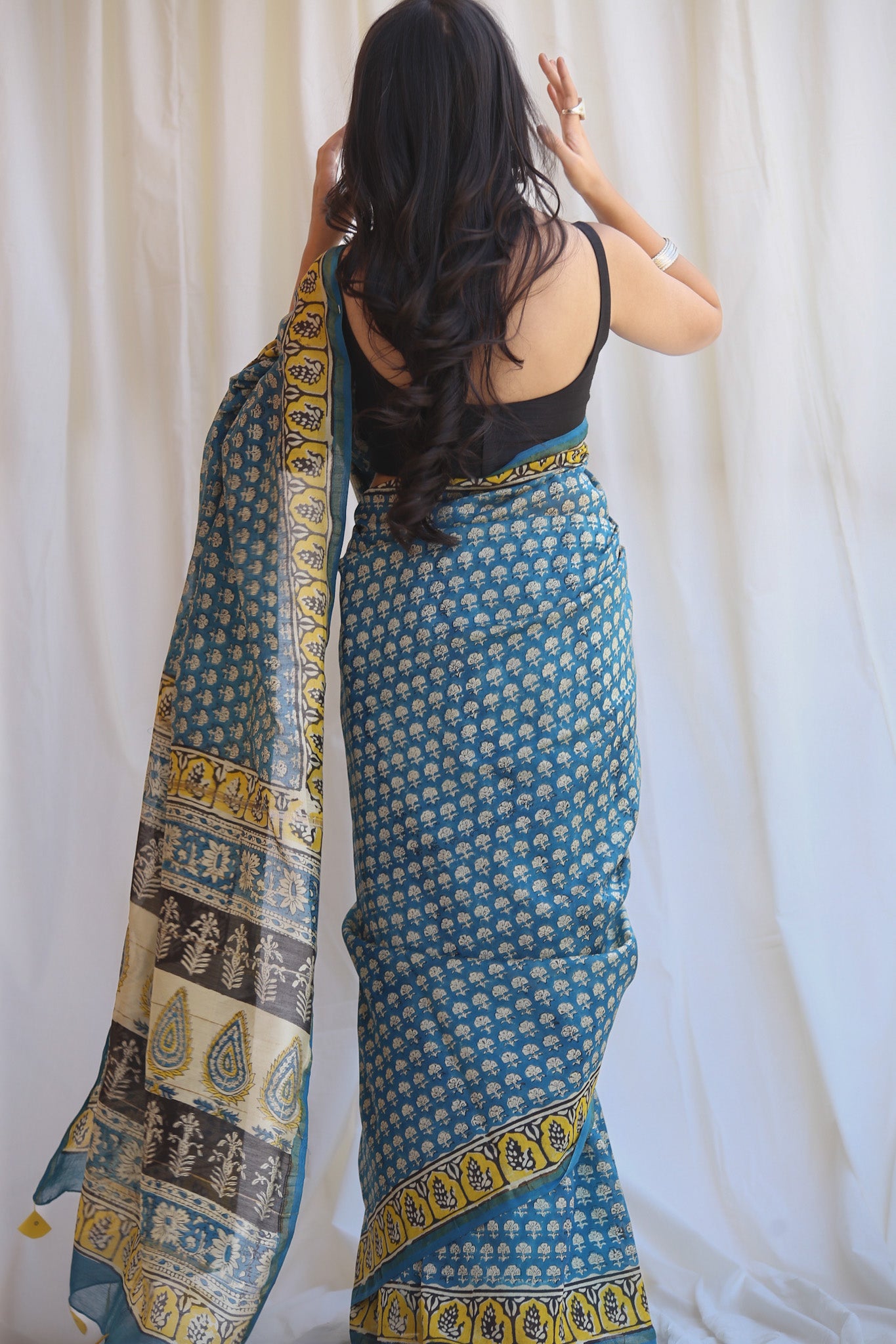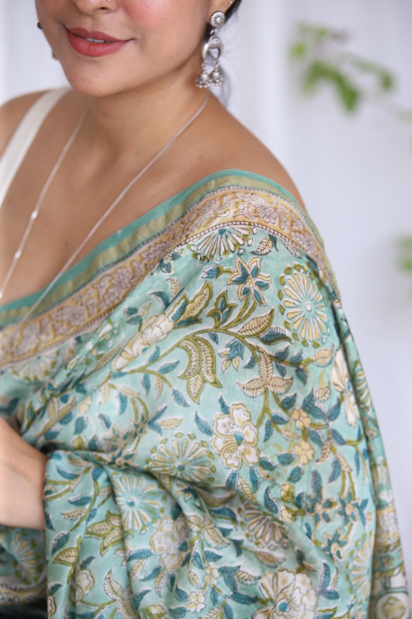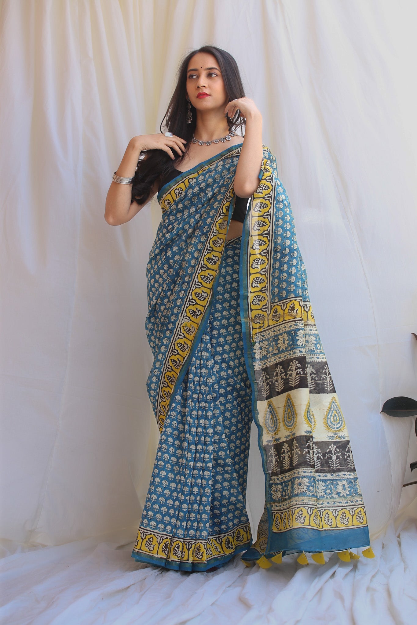 - Luxurious Fabric: Chanderi sarees are crafted from a blend of silk and cotton, offering a soft, lightweight drape that is both comfortable and elegant.