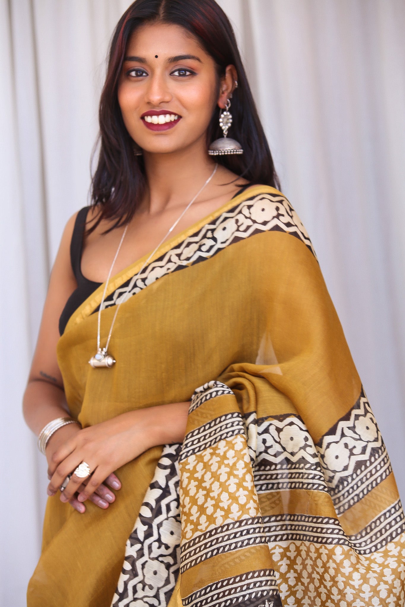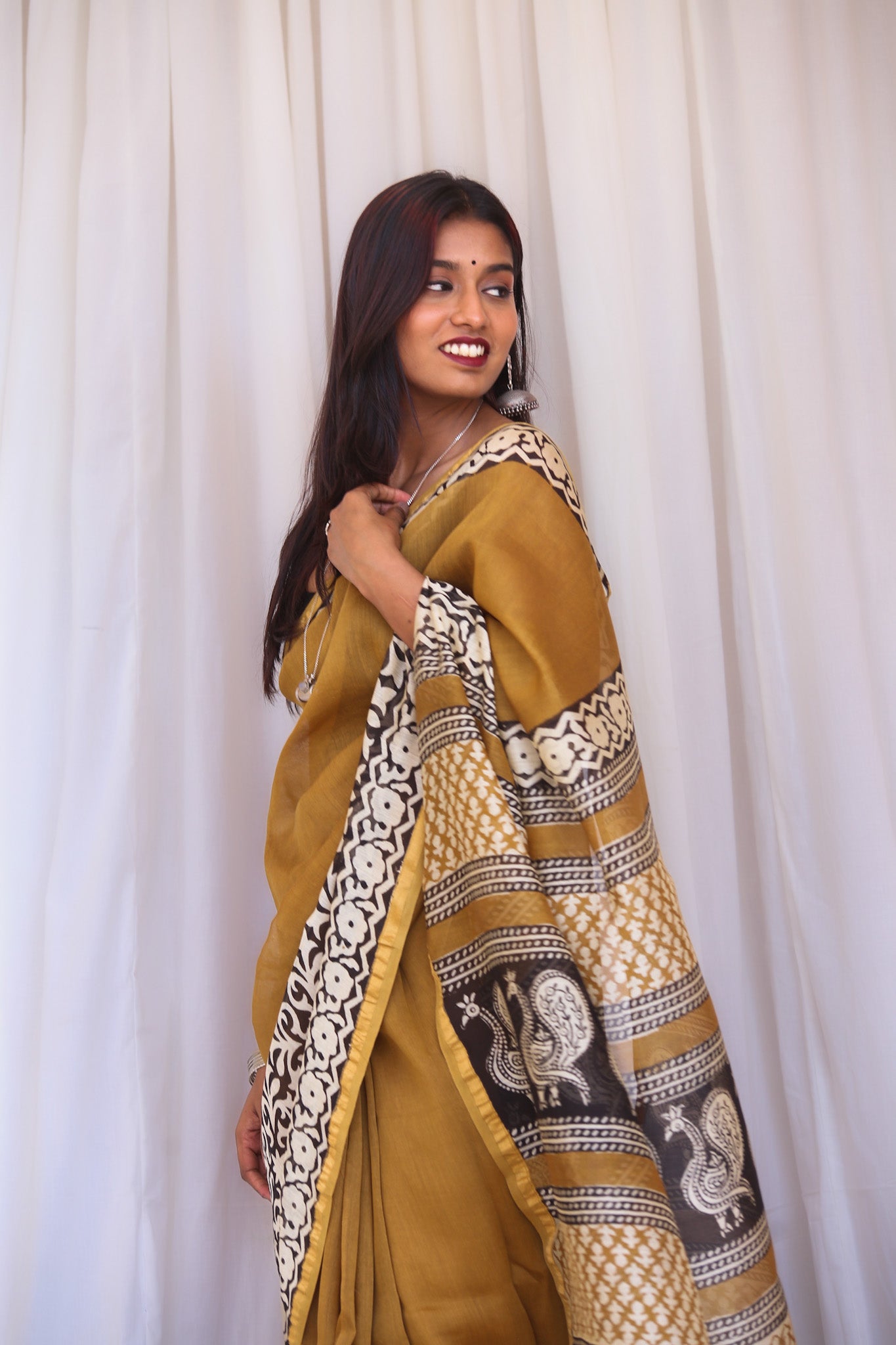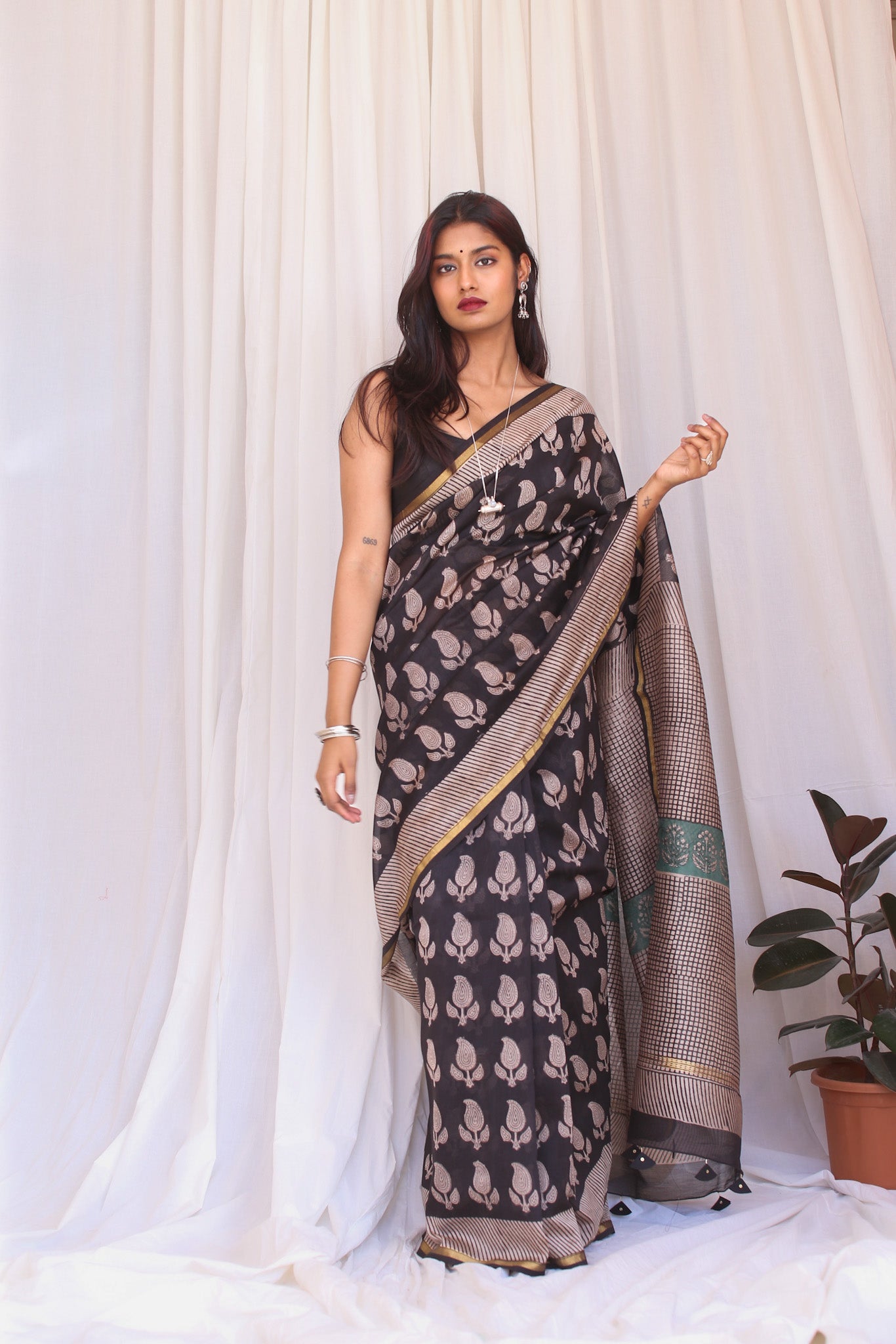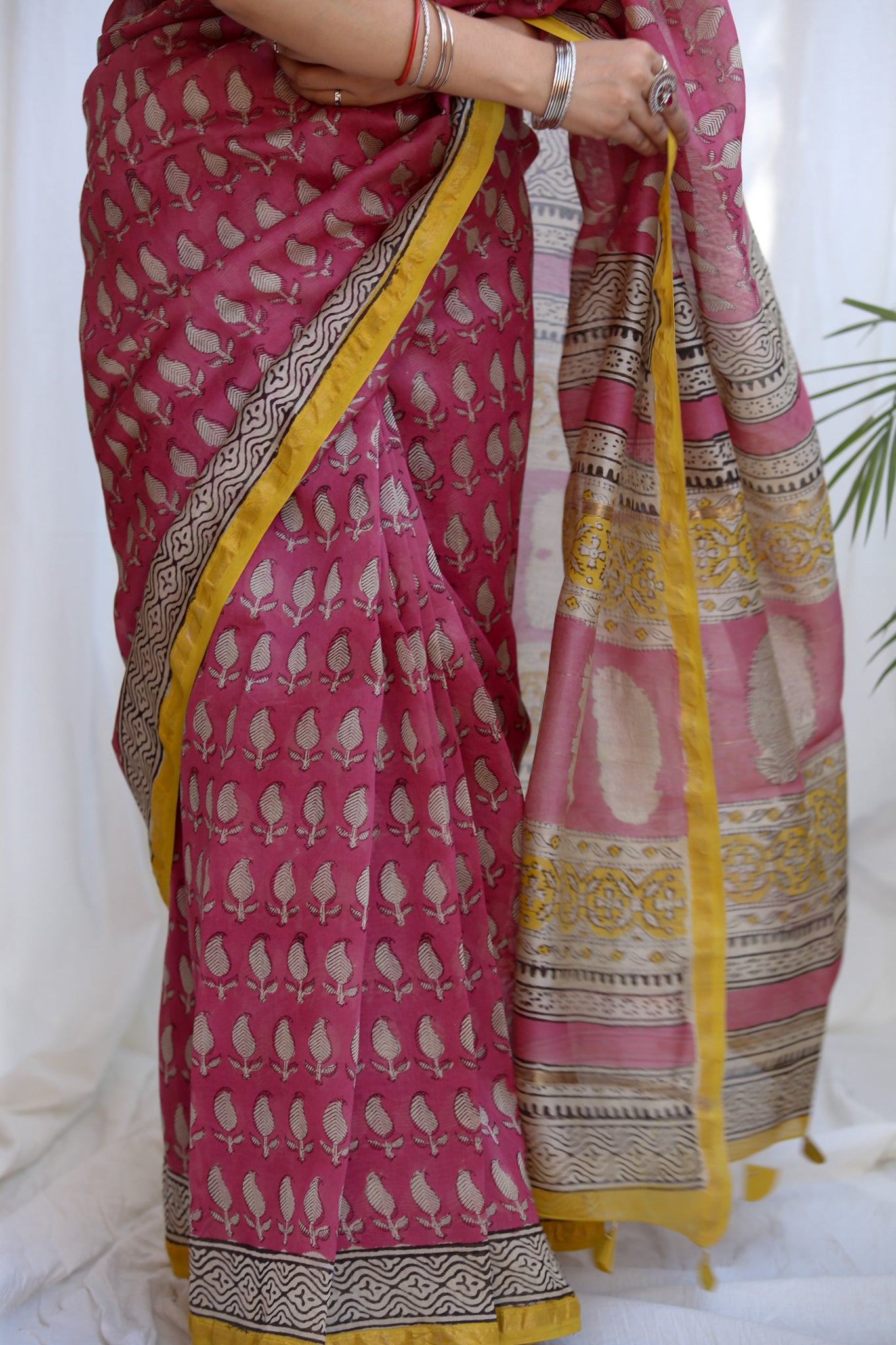- Luxurious Fabric: Chanderi sarees are crafted from a blend of silk and cotton, offering a soft, lightweight drape that is both comfortable and elegant.