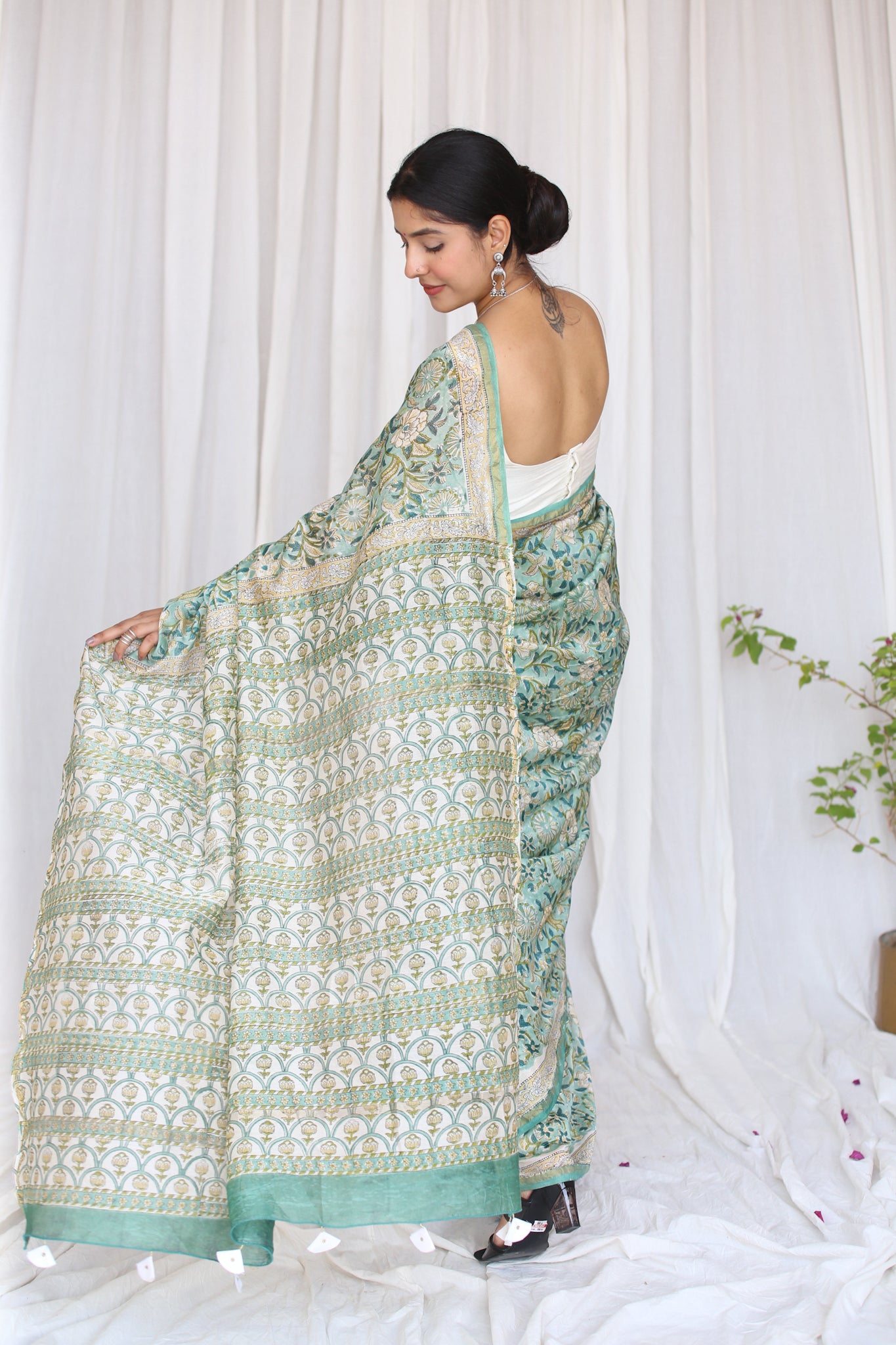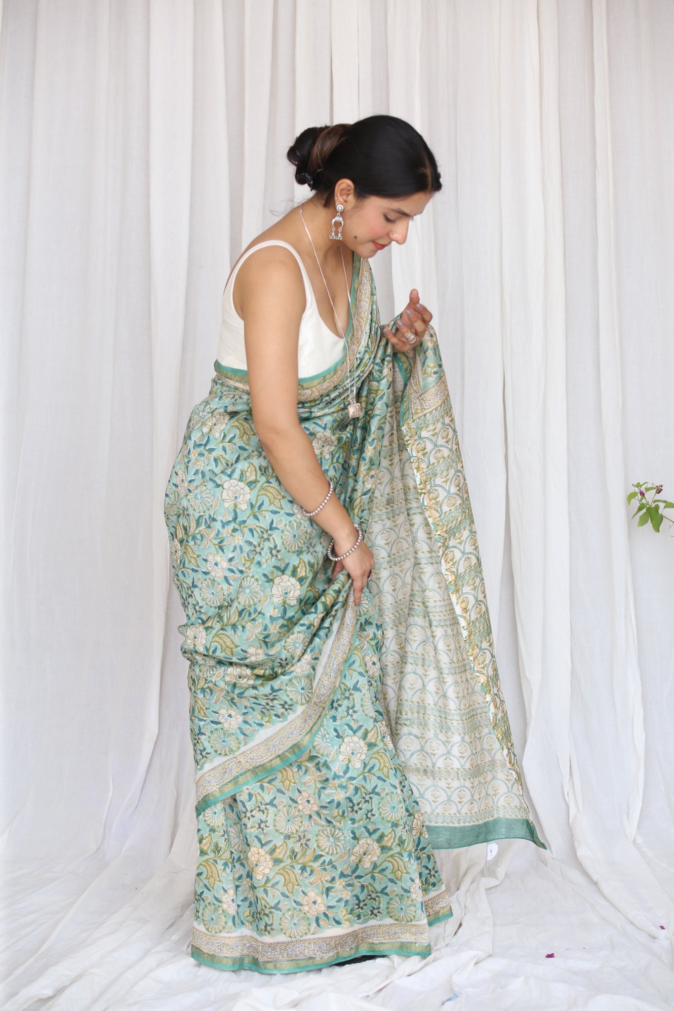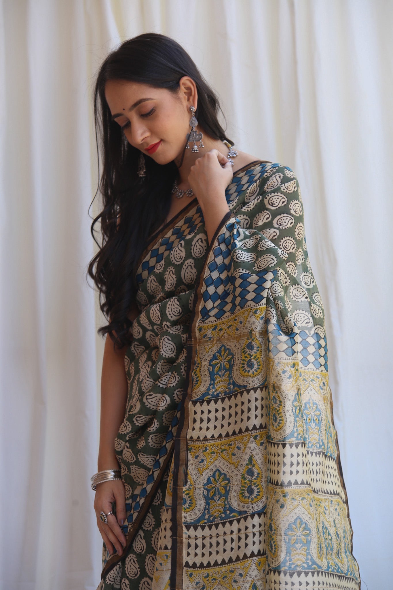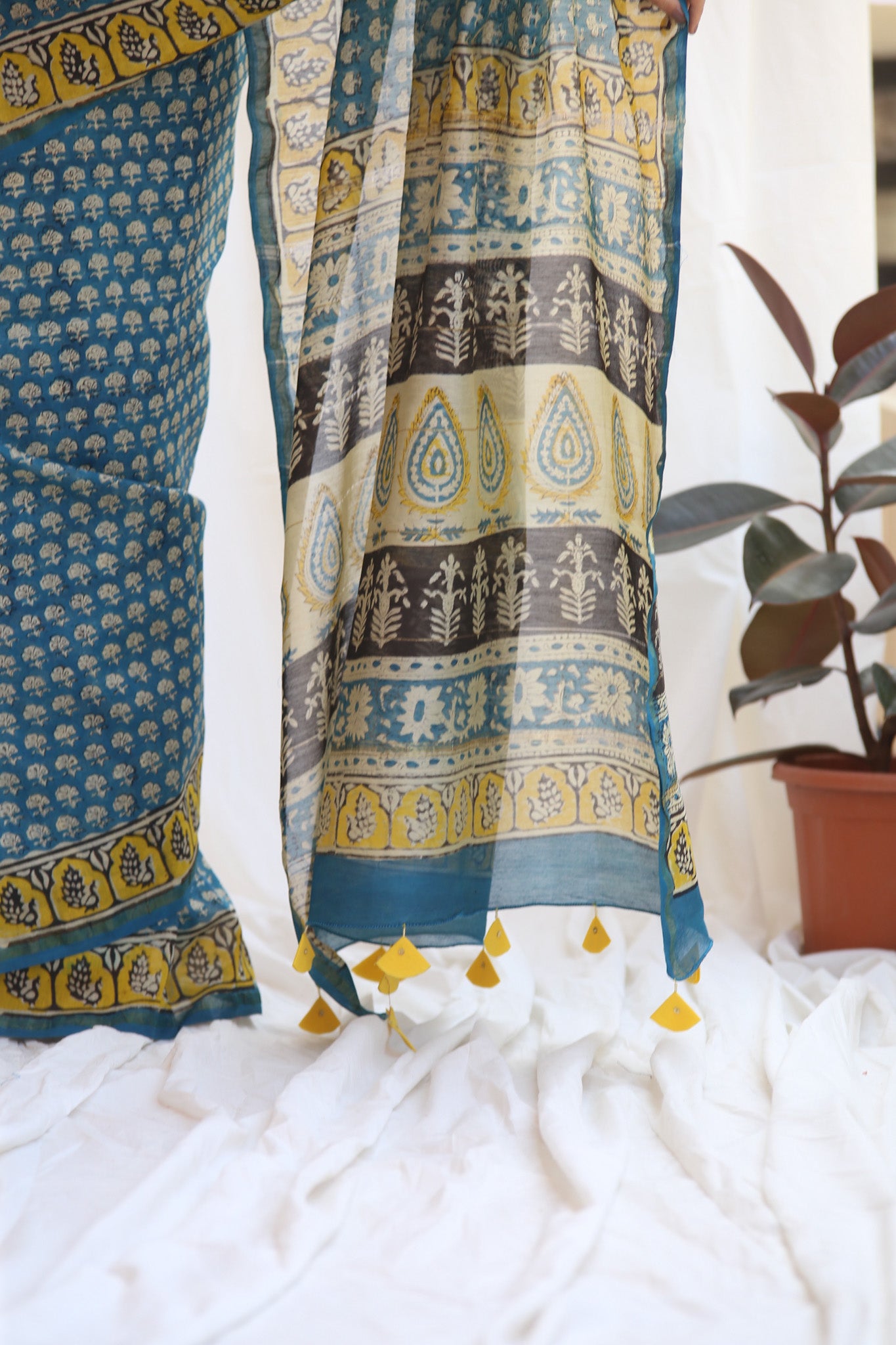 - Luxurious Fabric: Chanderi sarees are crafted from a blend of silk and cotton, offering a soft, lightweight drape that is both comfortable and elegant.