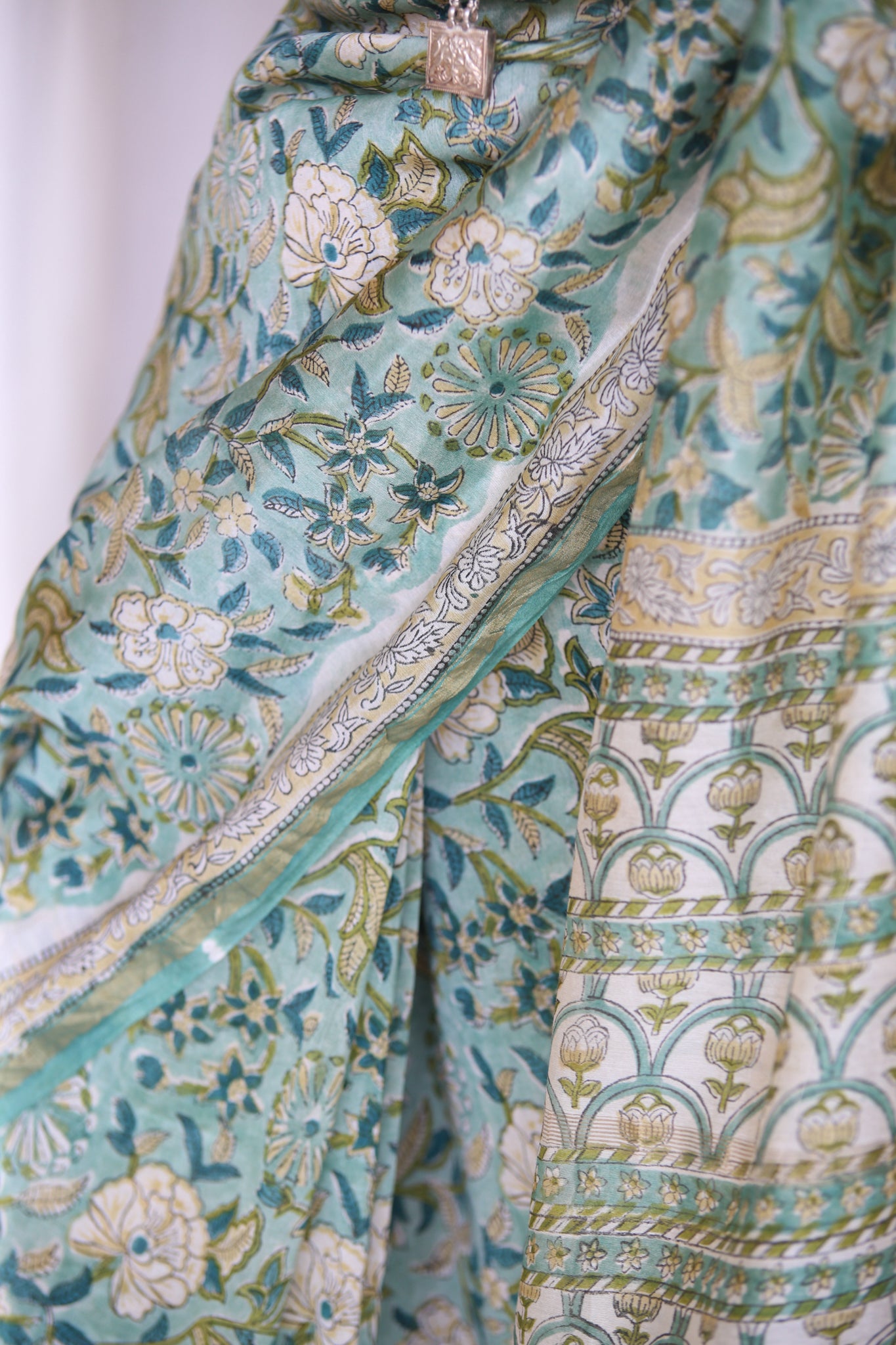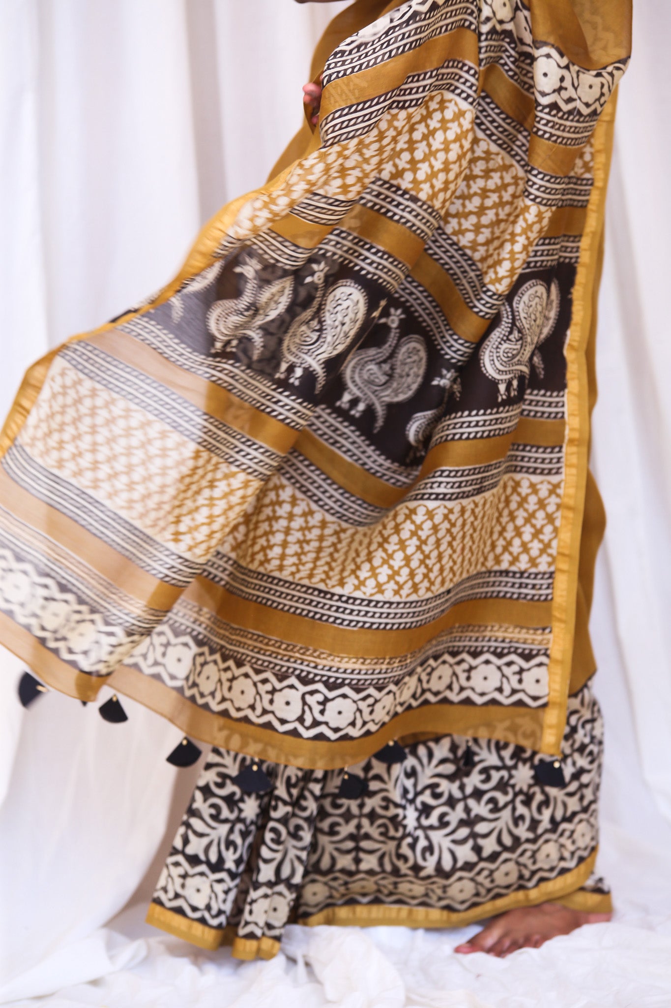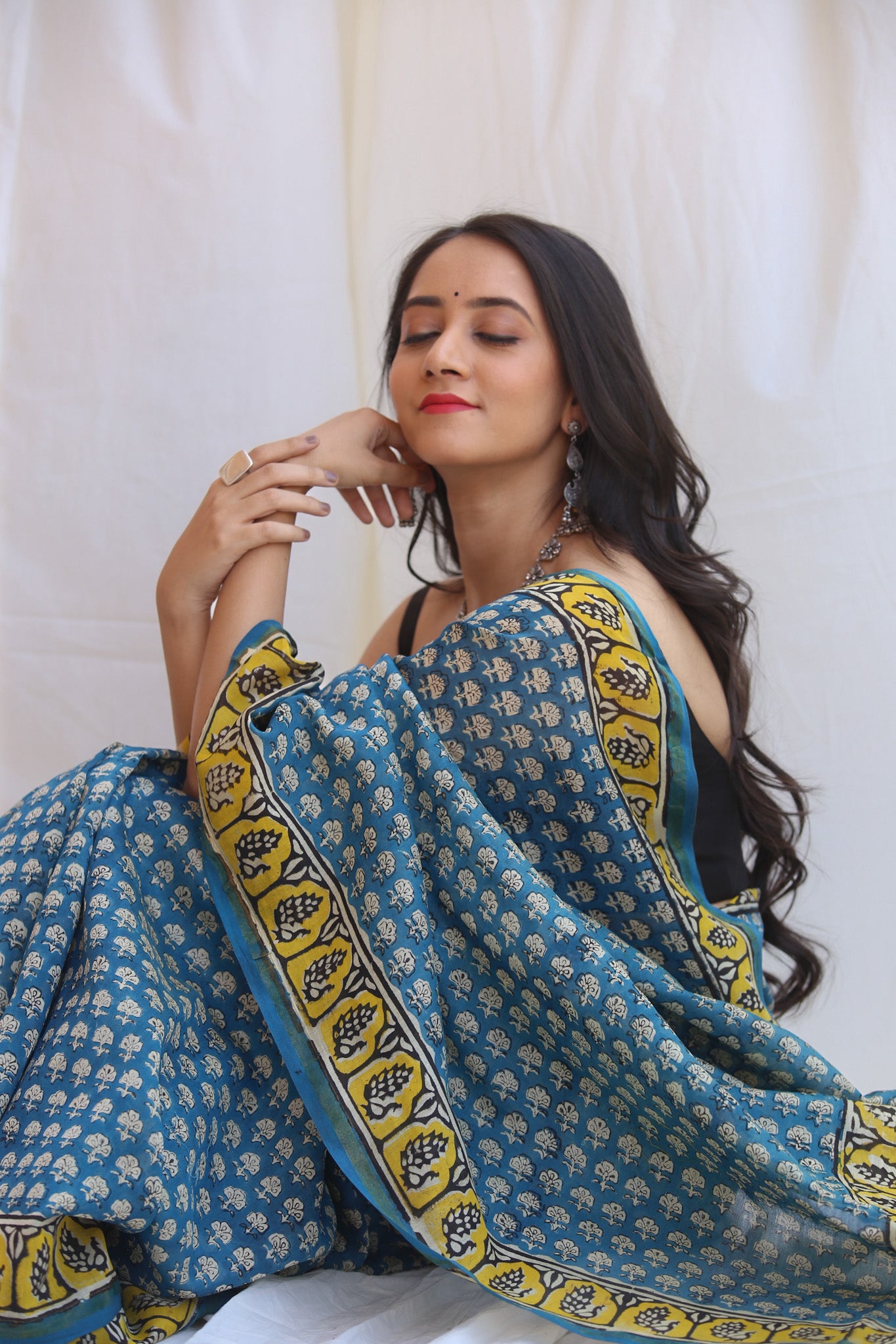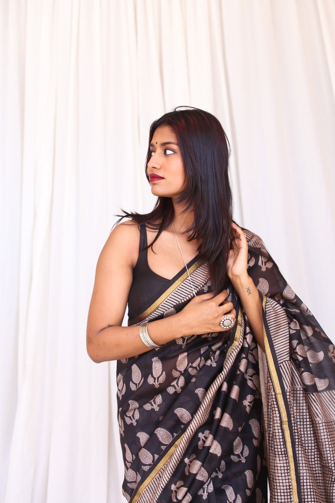 - Luxurious Fabric: Chanderi sarees are crafted from a blend of silk and cotton, offering a soft, lightweight drape that is both comfortable and elegant.