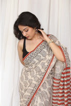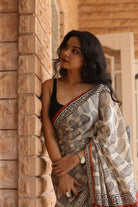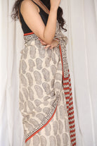 Dust Wears a Pattern: Black Ambi Bagru Handblock Ivory Cotton Saree