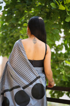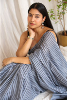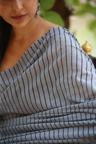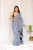 A versatile grey saree handblock printed with neat, smart vertical lining in a minimalist style. Crafted in breathable pure cotton, it's a timeless piece perfect for everyday elegance or elevated office wear.