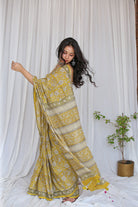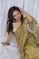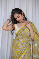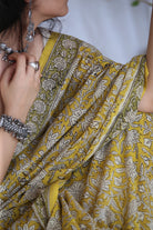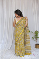 Kanakapriya : Yellow Bagru Handblock Cotton Saree