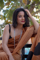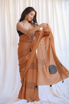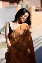Kashtha : Brown Geometric Handblock Cotton Saree