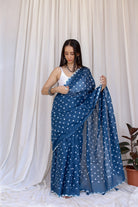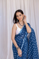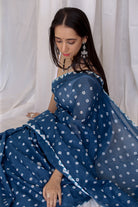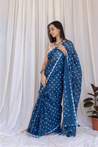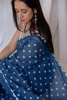 Drape yourself in elegance with this Rama cotton saree, adorned with a delicate white hand-tied Bandhani pattern. The soft, lightweight fabric ensures all-day comfort, making it perfect for celebrations and everyday wear.