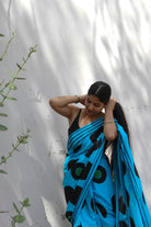 Sky Blue Black Block Print Saree
