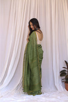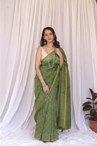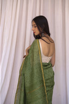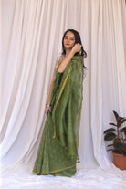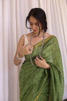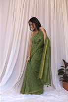 Panna : Green Geometric Discharge Handblock Chanderi Saree