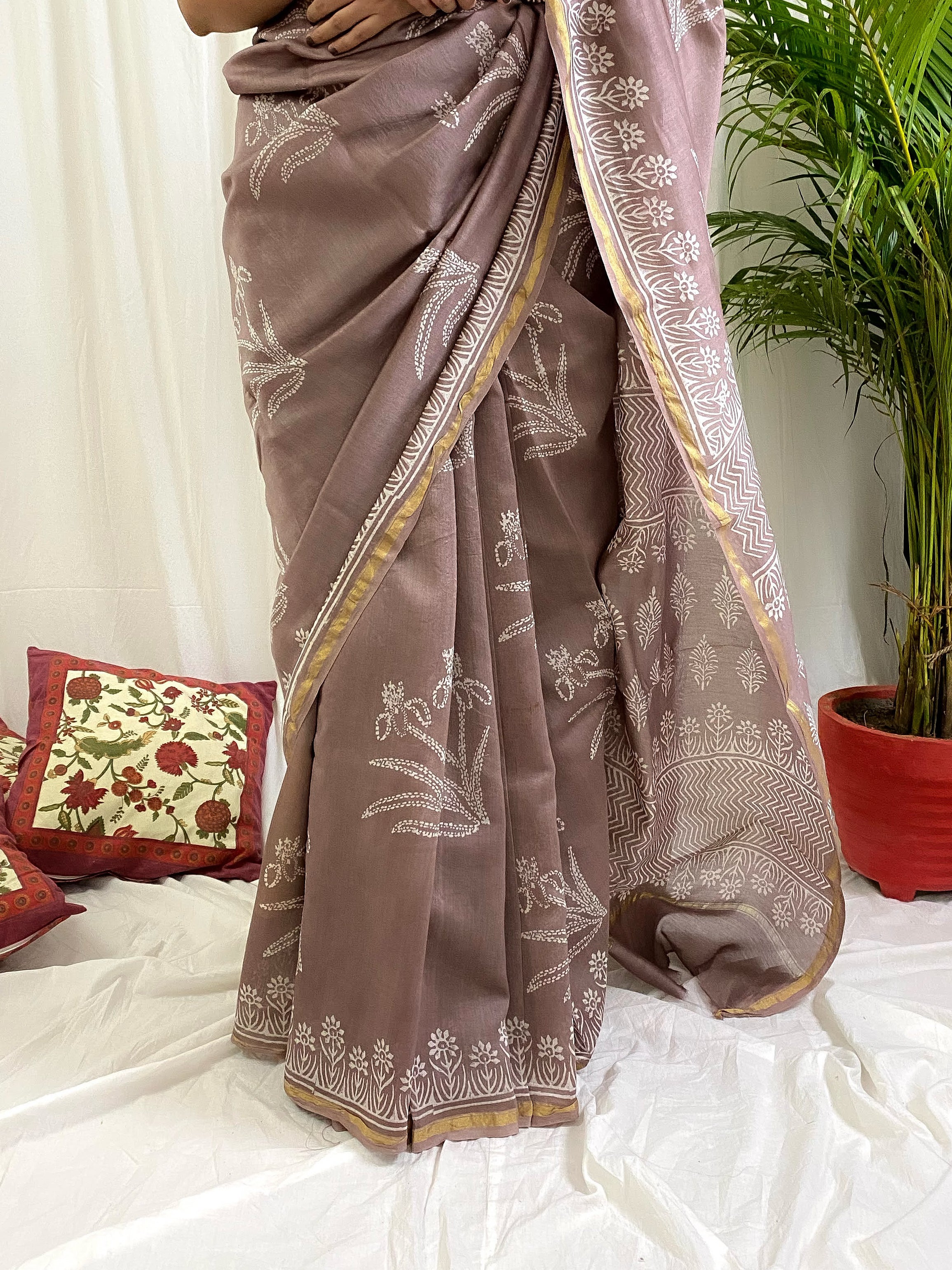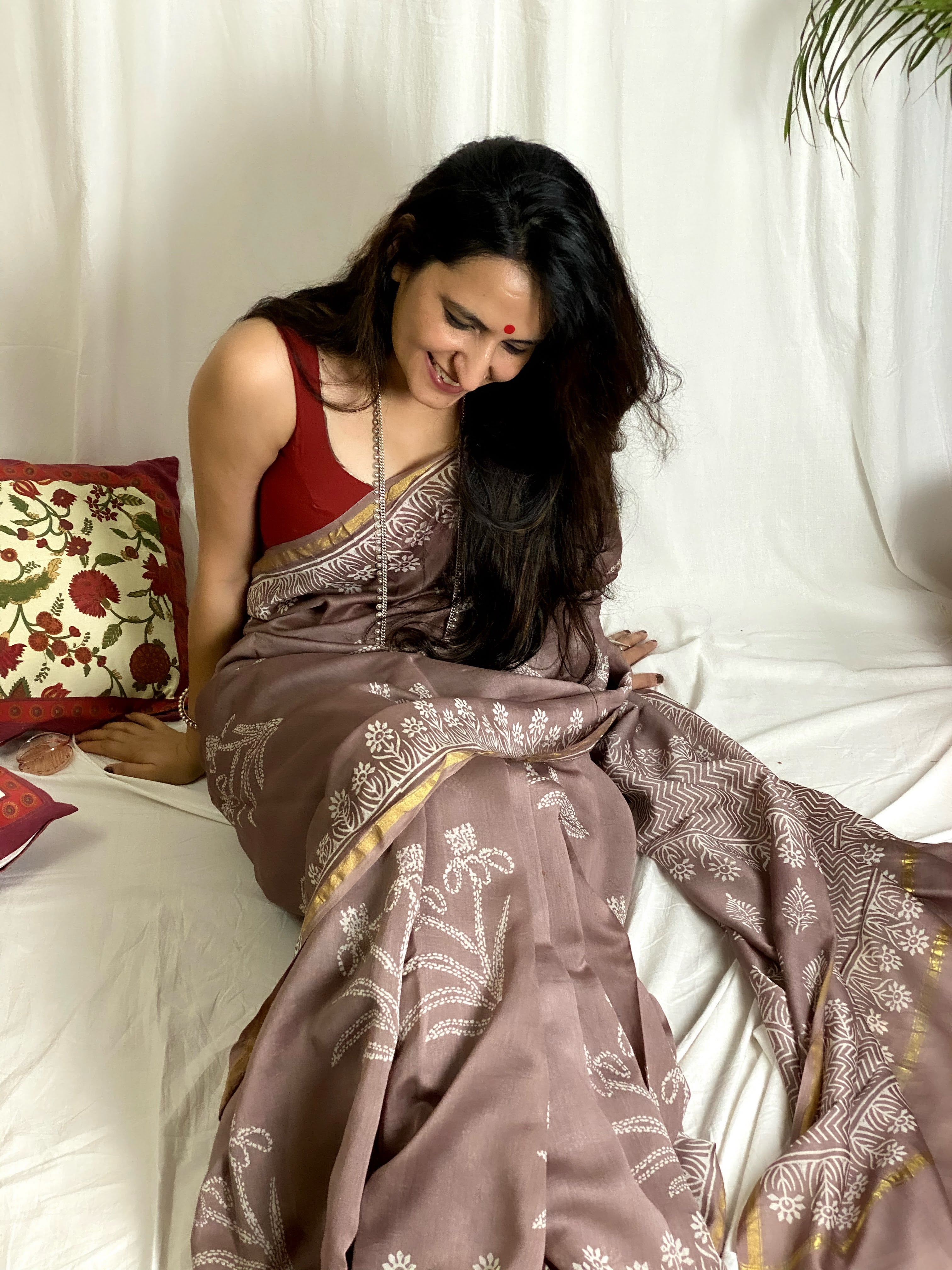 Chemical Discharge Technique: Unlike traditional block printing methods that add color to the fabric, discharge block printing uses a chemical process to remove color. This technique creates a high-contrast effect, where the pattern appears in a lighter shade against a darker background.