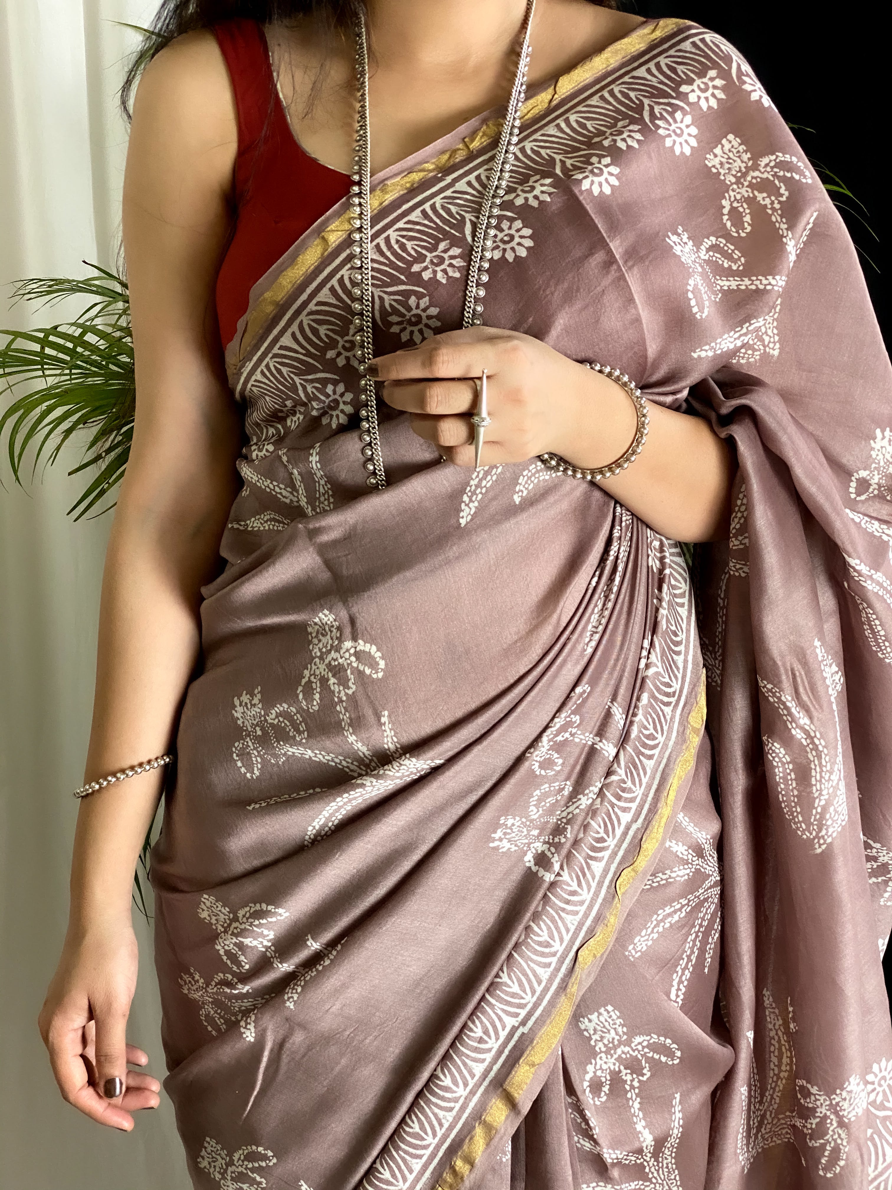 Discharge block printing is a distinctive textile printing technique celebrated for its ability to create intricate designs and vibrant patterns. This method involves using a chemical discharge process to remove dye from pre-dyed fabrics, revealing a contrasting pattern. Here’s a detailed description of how discharge block printing is done and what makes it unique: