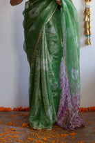 Green Bandhani Kota Doria Pure Tissue Silk Handloom Saree