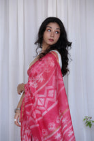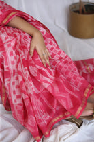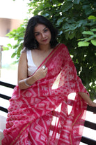 Raspberry Needle Shibori Chanderi Silk Cotton Saree