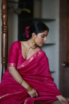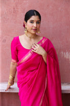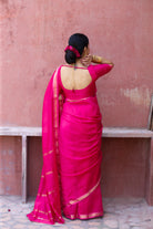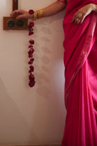 Like petals wearing crowns, rani pink unfurls with the confidence of royalty. Finished with woven gold and gotta tassels, this silk cotton saree is a radiant choice for bridesmaids, festive wear, and wedding celebrations.