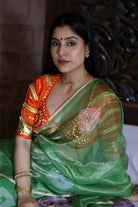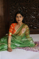 Green Bandhani Kota Doria Pure Tissue Silk Handloom Saree