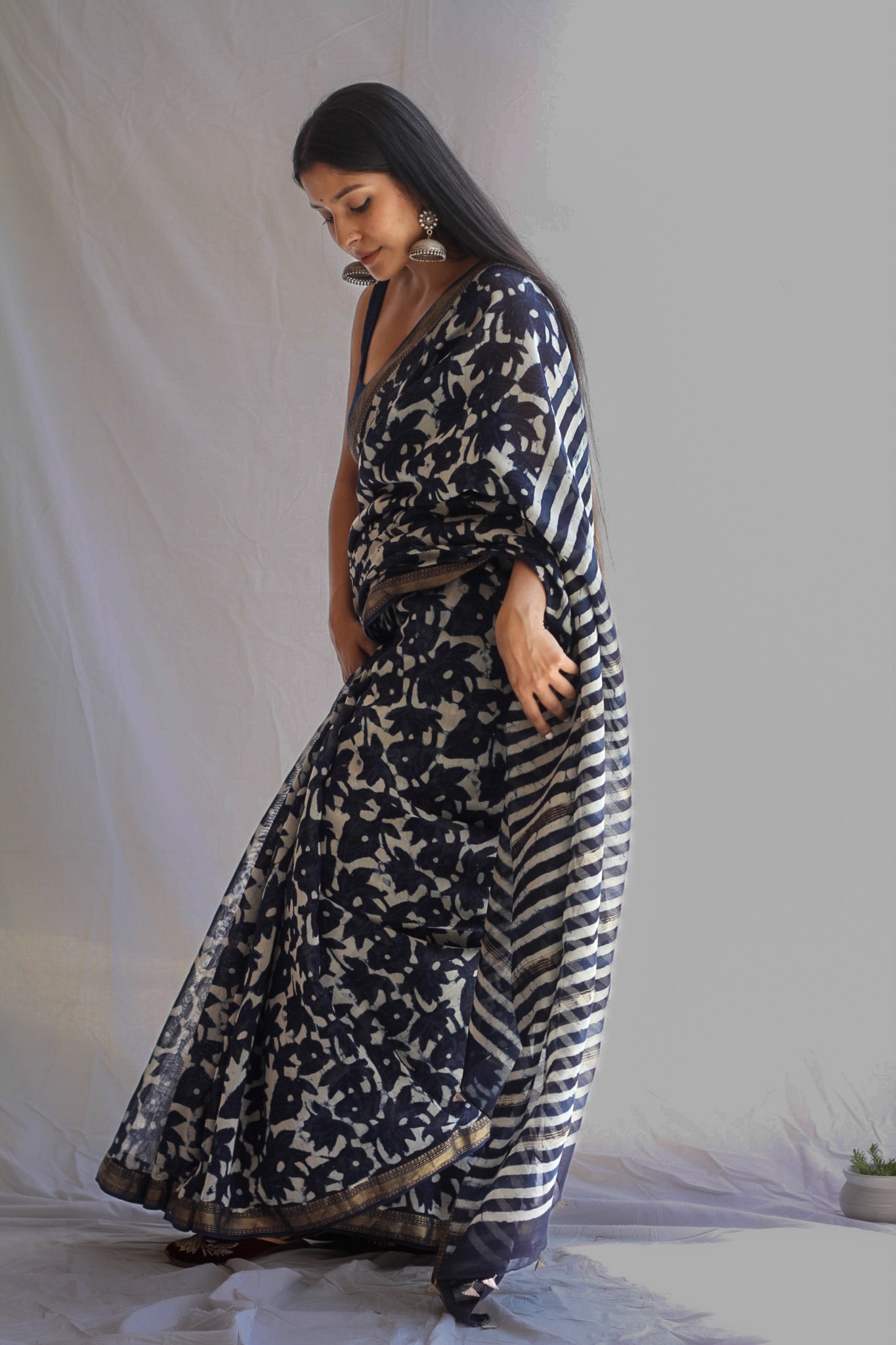 Chandni: Akola Indigo Maheshwari Water Lilies Saree