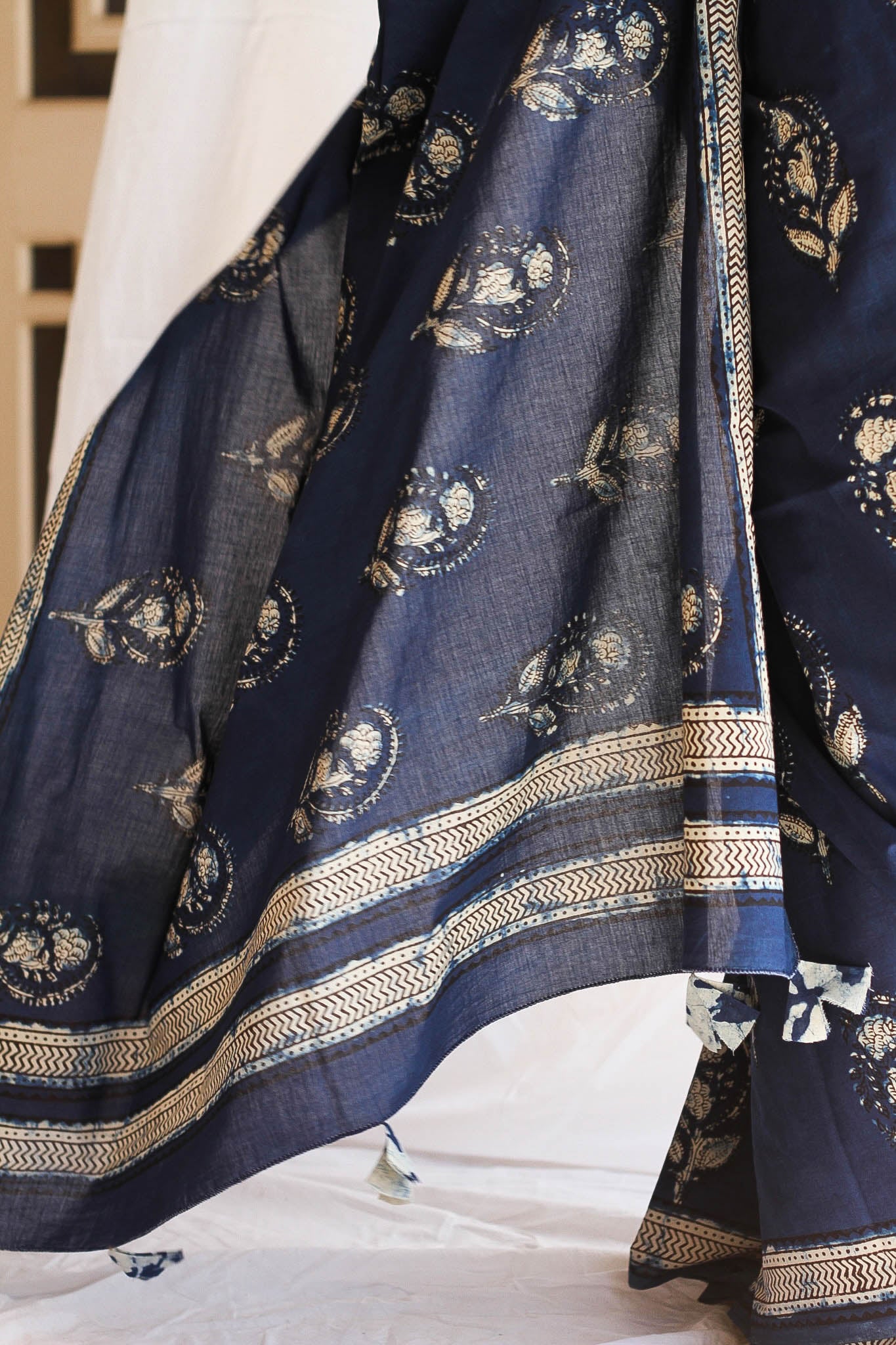 Other Details : 100% cotton, 5.5m length, 44'' width, 80-90 cm Blouse length, Block print process is Jahota Block Art, Handmade Tassels on pallu.