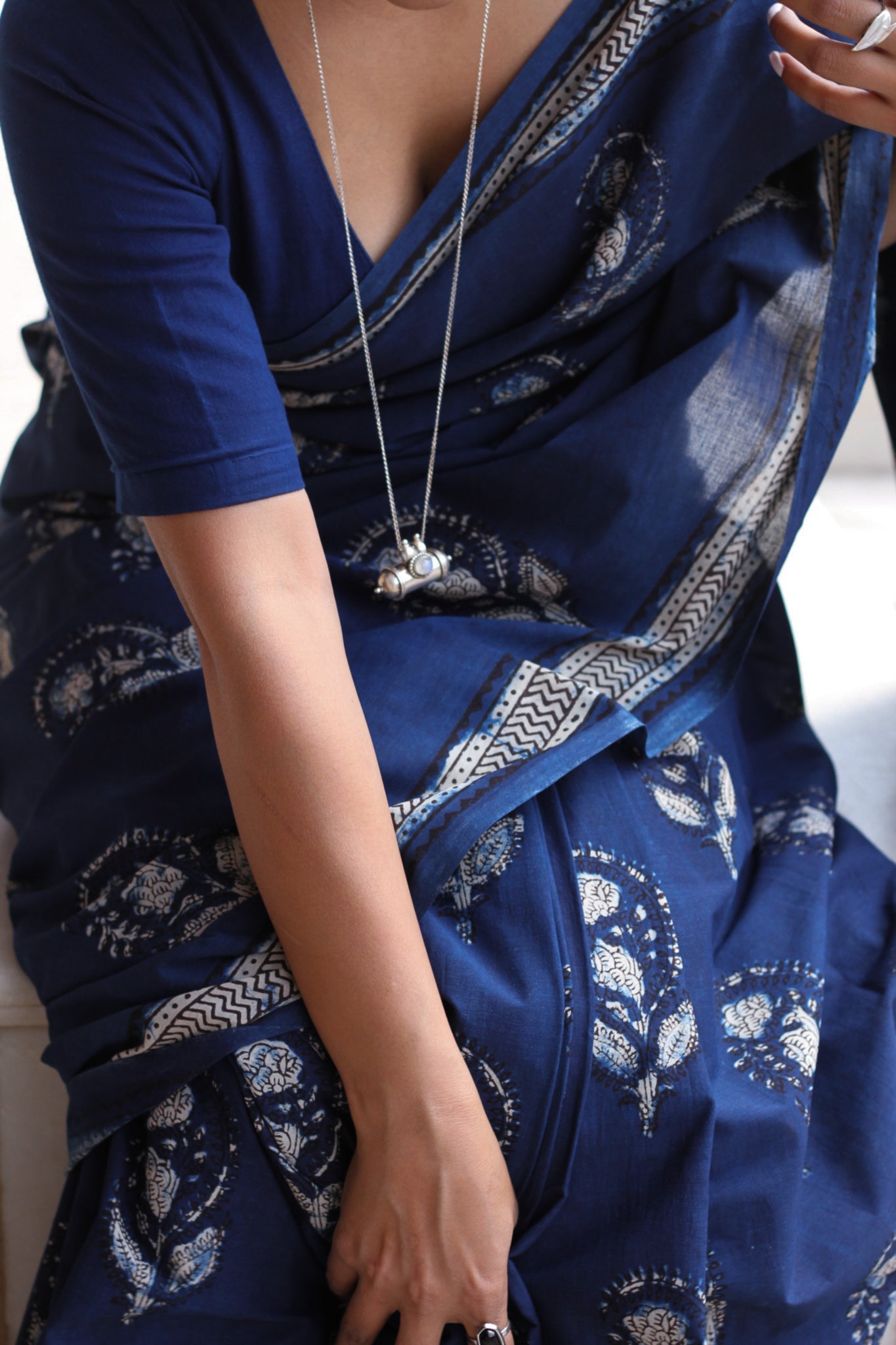 Chithiyaan: Indigo Jahota block print Saree