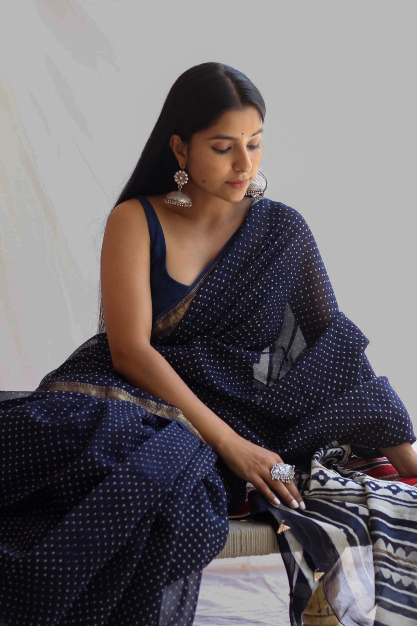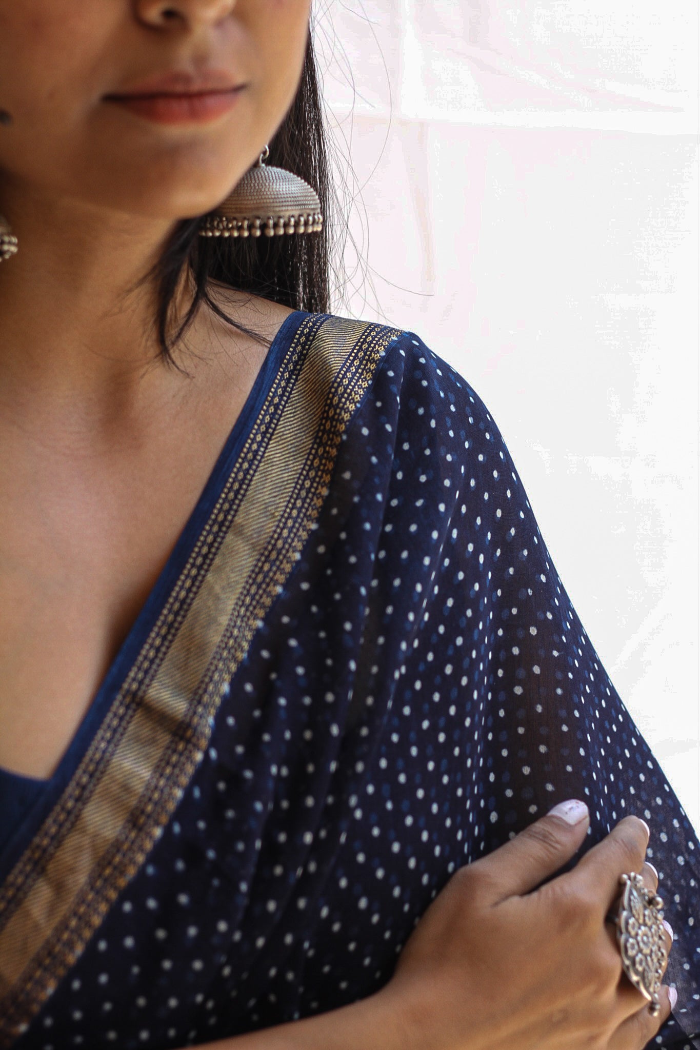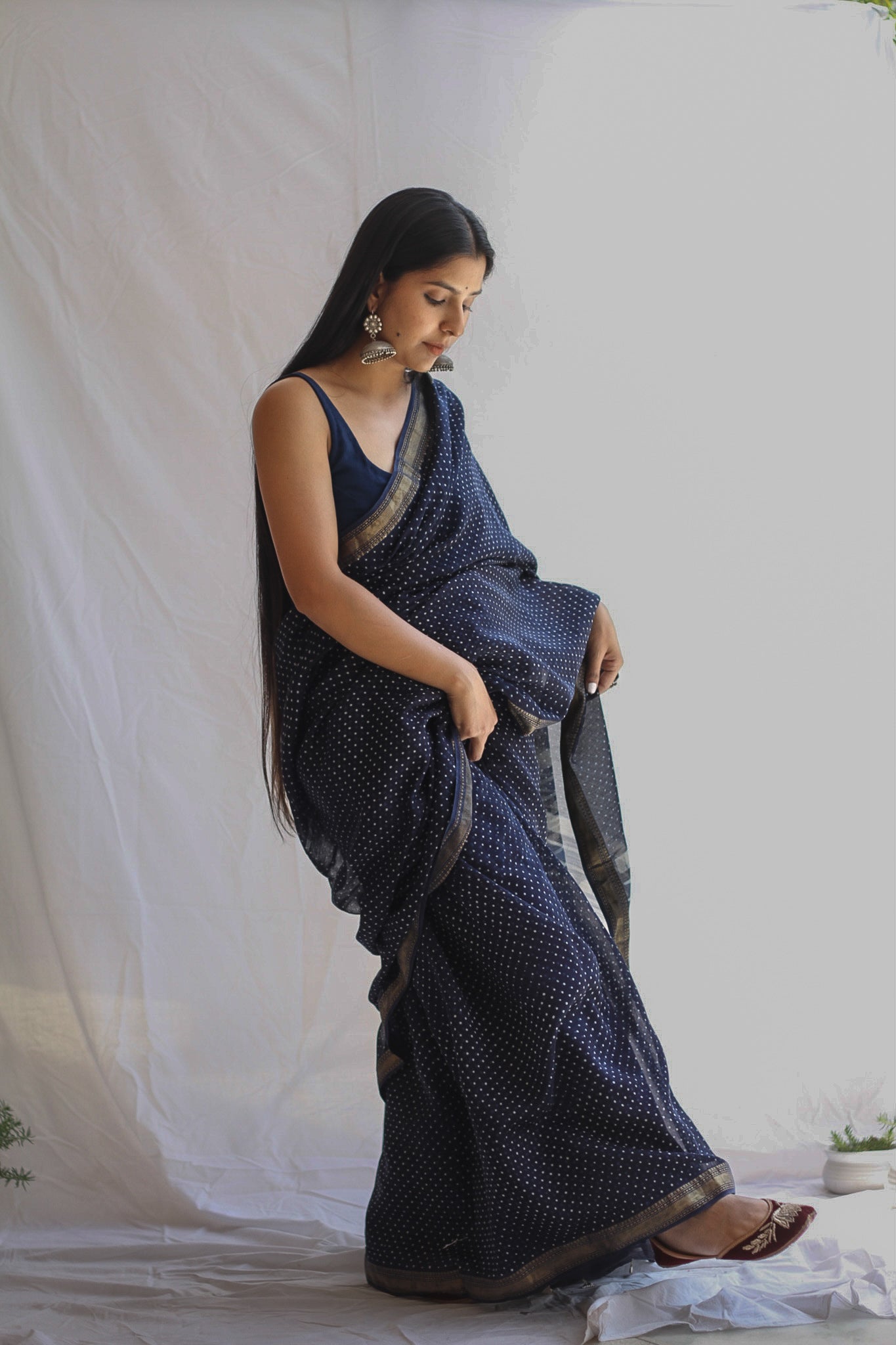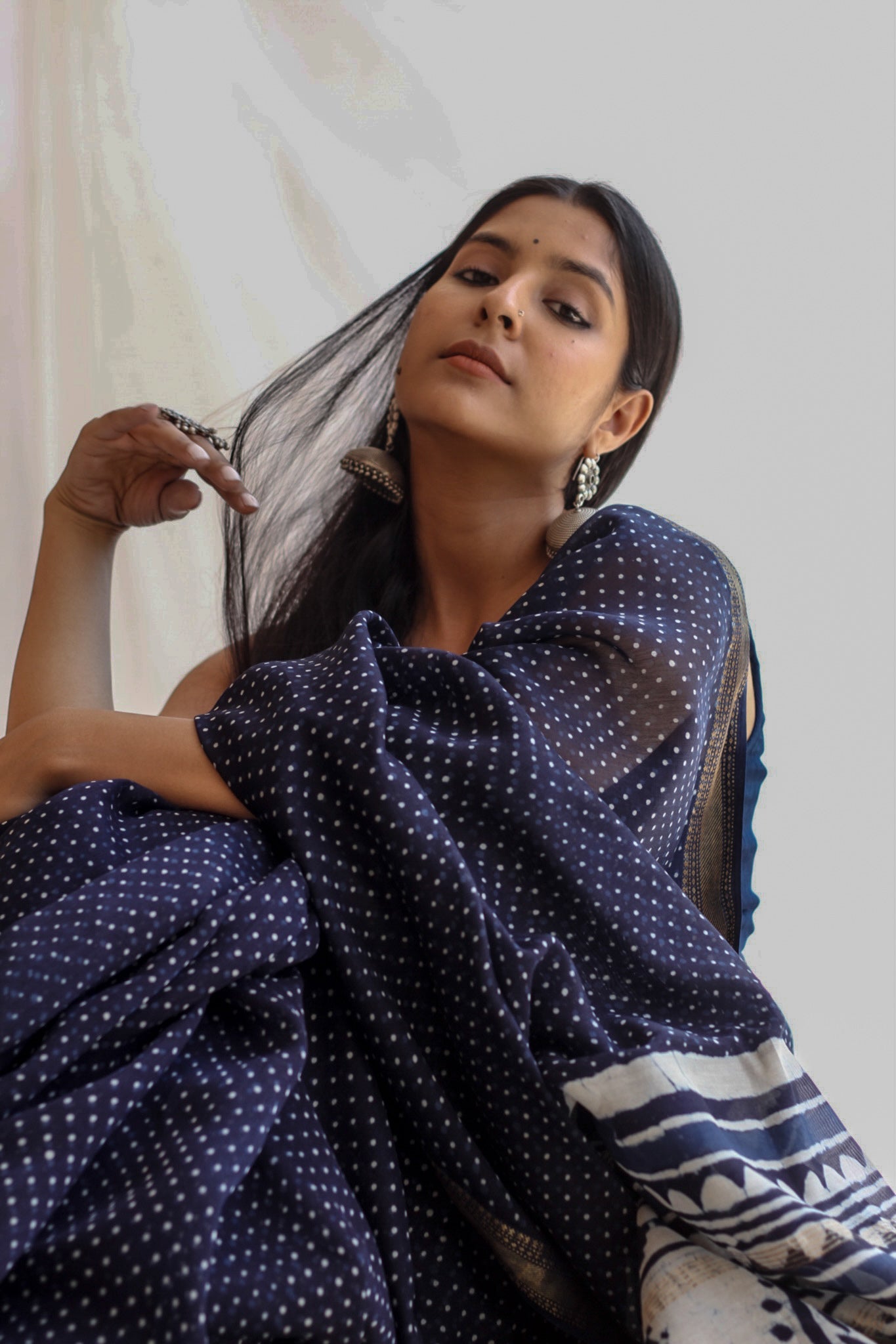 Roshni: Akola Indigo Maheshwari Polka Dot Saree