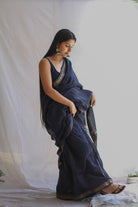 Introducing Roshni : Akola Indigo Maheshwari Polka Dot Saree, a luxurious and exclusive addition to your wardrobe. Made from the finest silk and cotton, featuring a beautiful Akola print and natural indigo dye, this saree boasts a stunning Zari border and handcrafted Gota tassels on the pallu. Perfect for special occasions, this saree is an authentic Akola design and exudes elegance and sophistication. Elevate your evening look with this exquisite saree.
