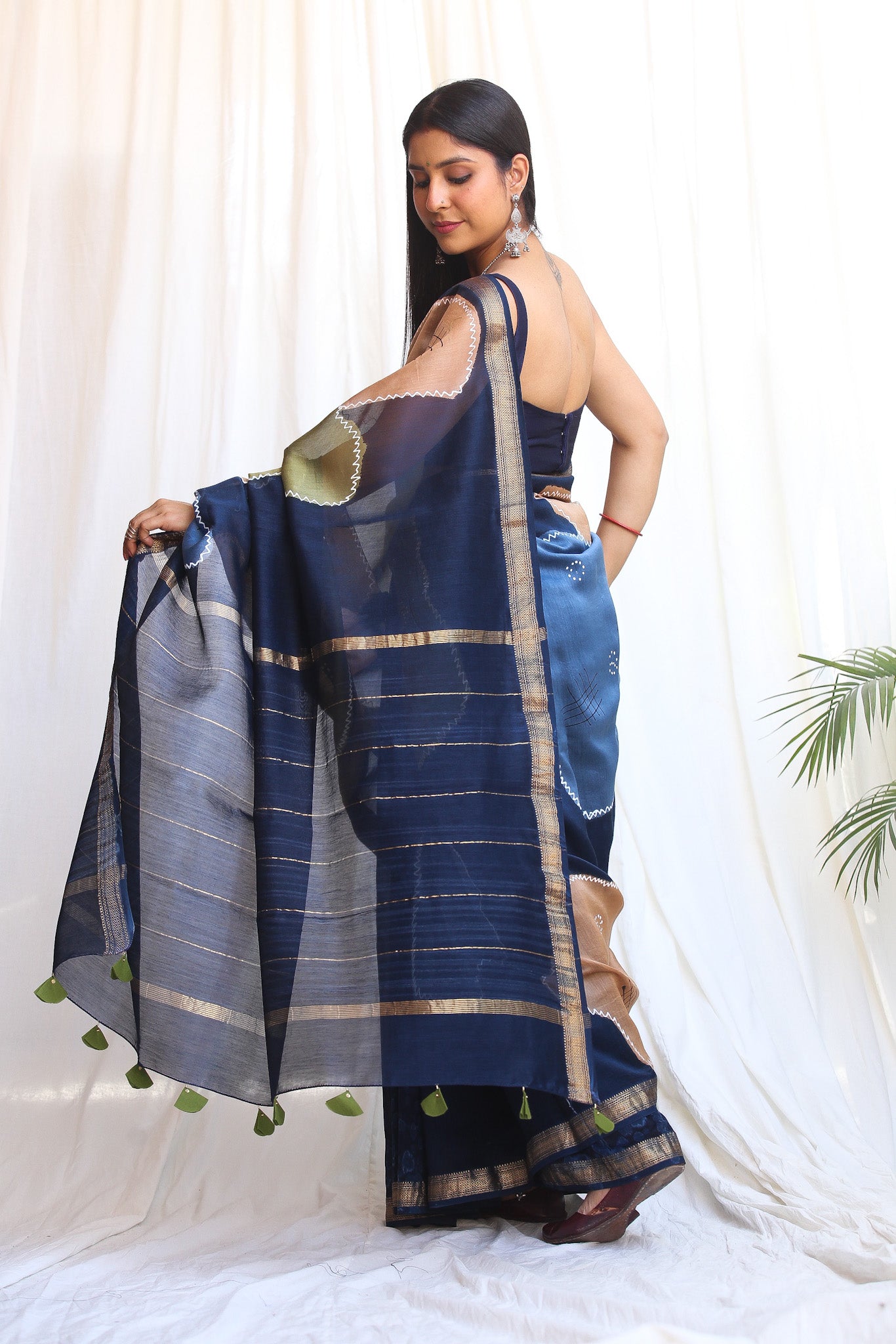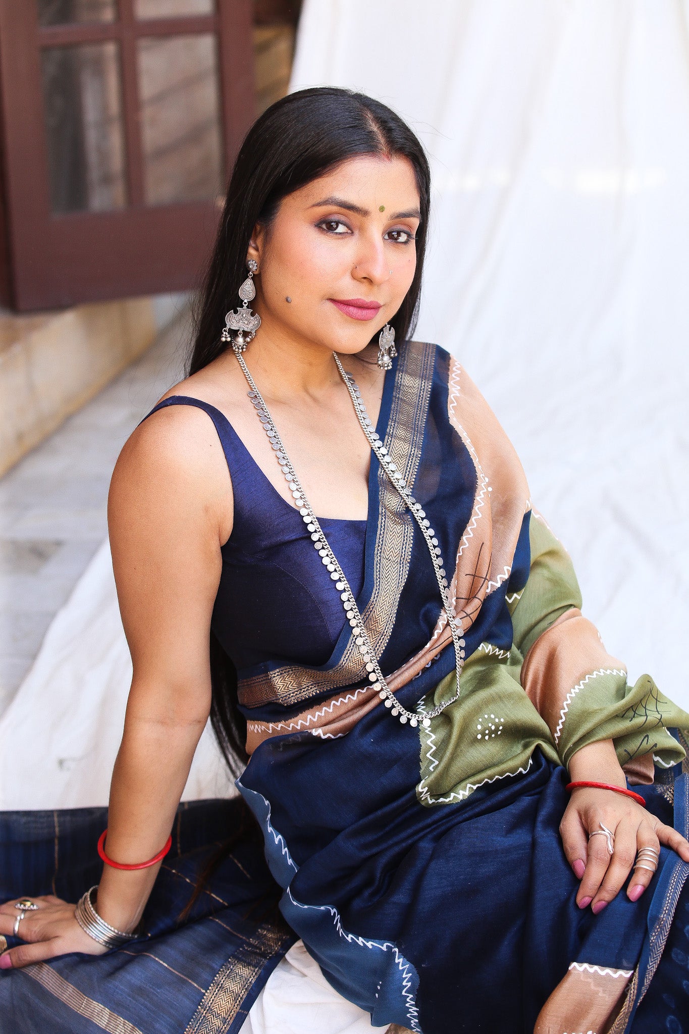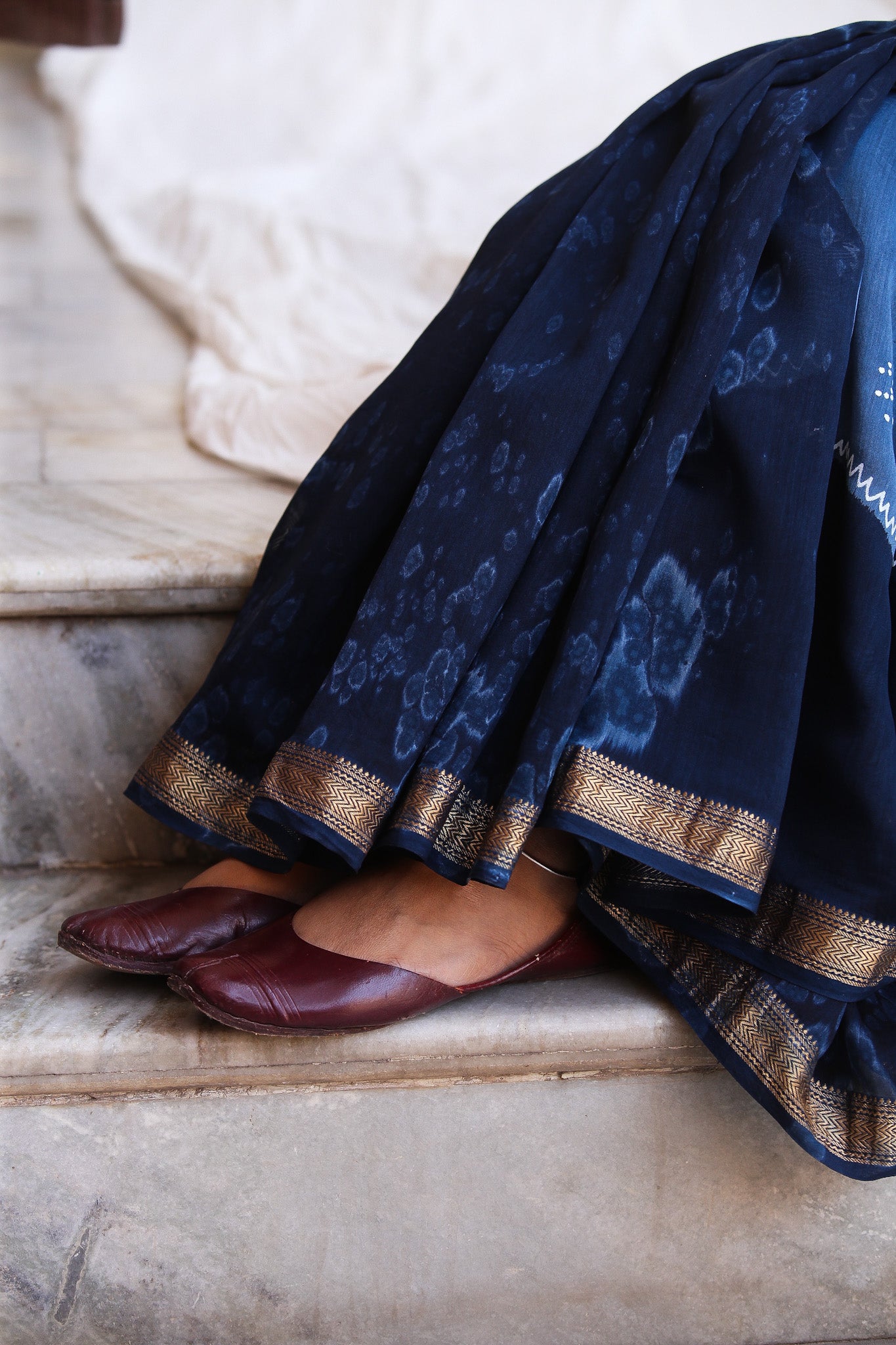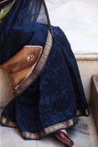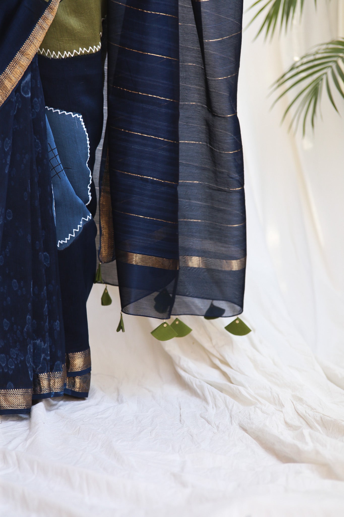 Saanjh : Royal Indigo Handpainted Maheshwari Saree
