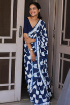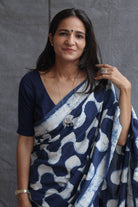 Skillfully crafted with a playful waves dabu print. Naturally dyed for an authentic and quirky look, this soft fabric piece is perfect for any formal occasion. Comes with a matching blouse piece. Handwash with mild detergent to preserve its heritage contemporary fashion and Indigo Color.