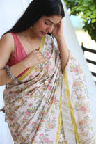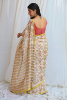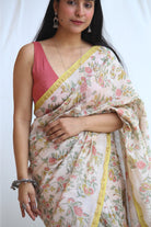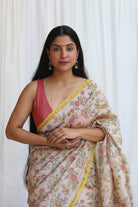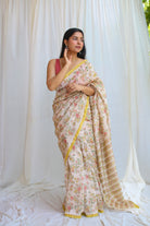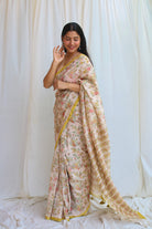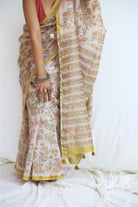 Chitrangada : Cream Sanganeri Floral Handblock Chanderi Saree