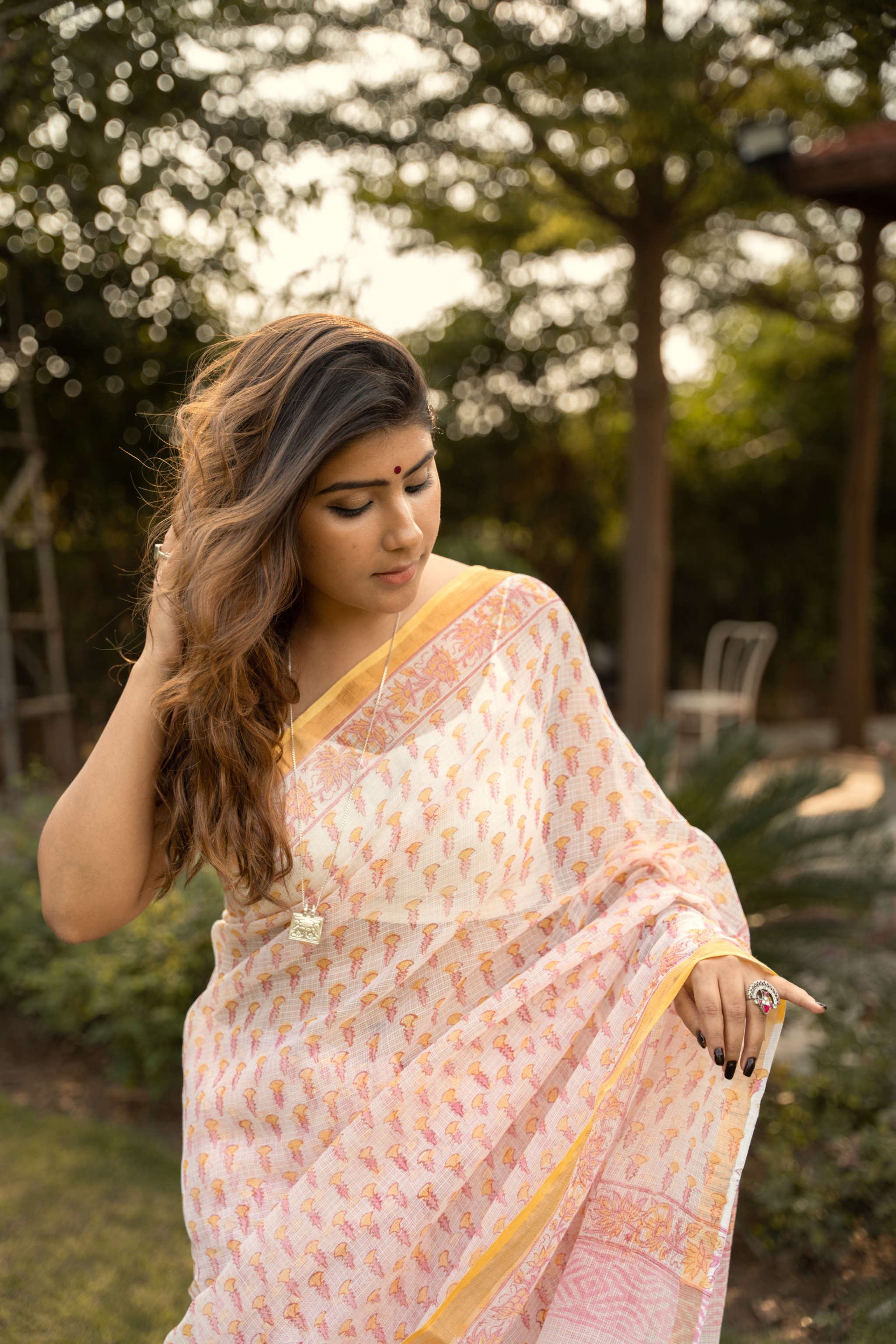 The Hans is a one-of-a-kind saree, handcrafted with Wooden Block Sanganeri Printing using natural dyes on 100% cotton Kota Doria. Adorned with beautiful Mughal bootas and handmade tassels on the pallu, this exquisite piece is artistry for the body, offering a superior craftsmanship that guarantees outstanding style and comfort. It also comes with 80-90cm Blockprinted blouse fabric and a total length of 5.5m.