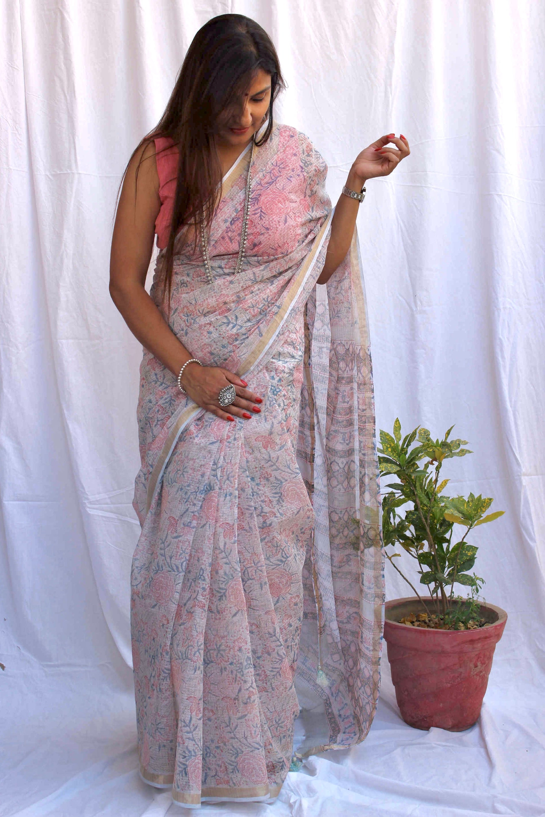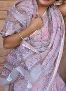 • Block Print Handcrafted with Zari Border and Handmade Tassels attached on Pallu