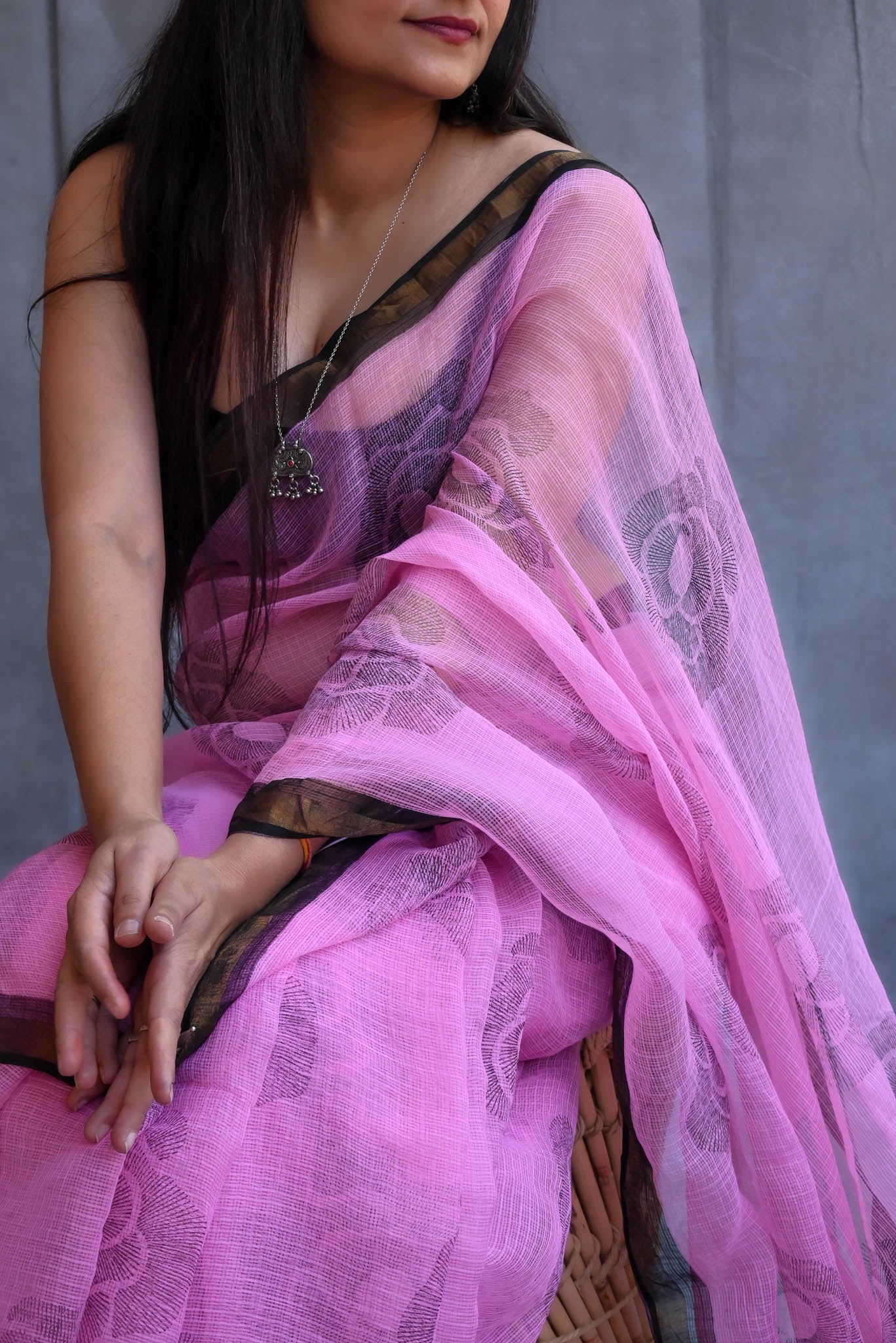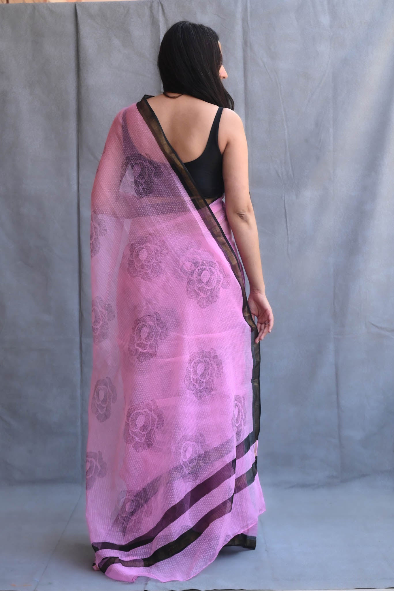 Indulge your love for luxury with this Block Print Kota Doria Saree. Expertly crafted with eco-friendly, azo-free dyes, this fabulous piece exudes wealth. A charming Roses pattern on a pink Background adds allure and elegance. Match it with a coordinating Block print blouse for an exceptional, one-of-a-kind ensemble!