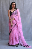 Pink Roses Print Saree