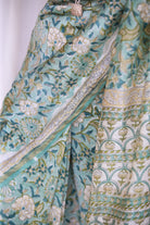 Shubhra : Mint Sanganeri Handblock Chanderi Saree