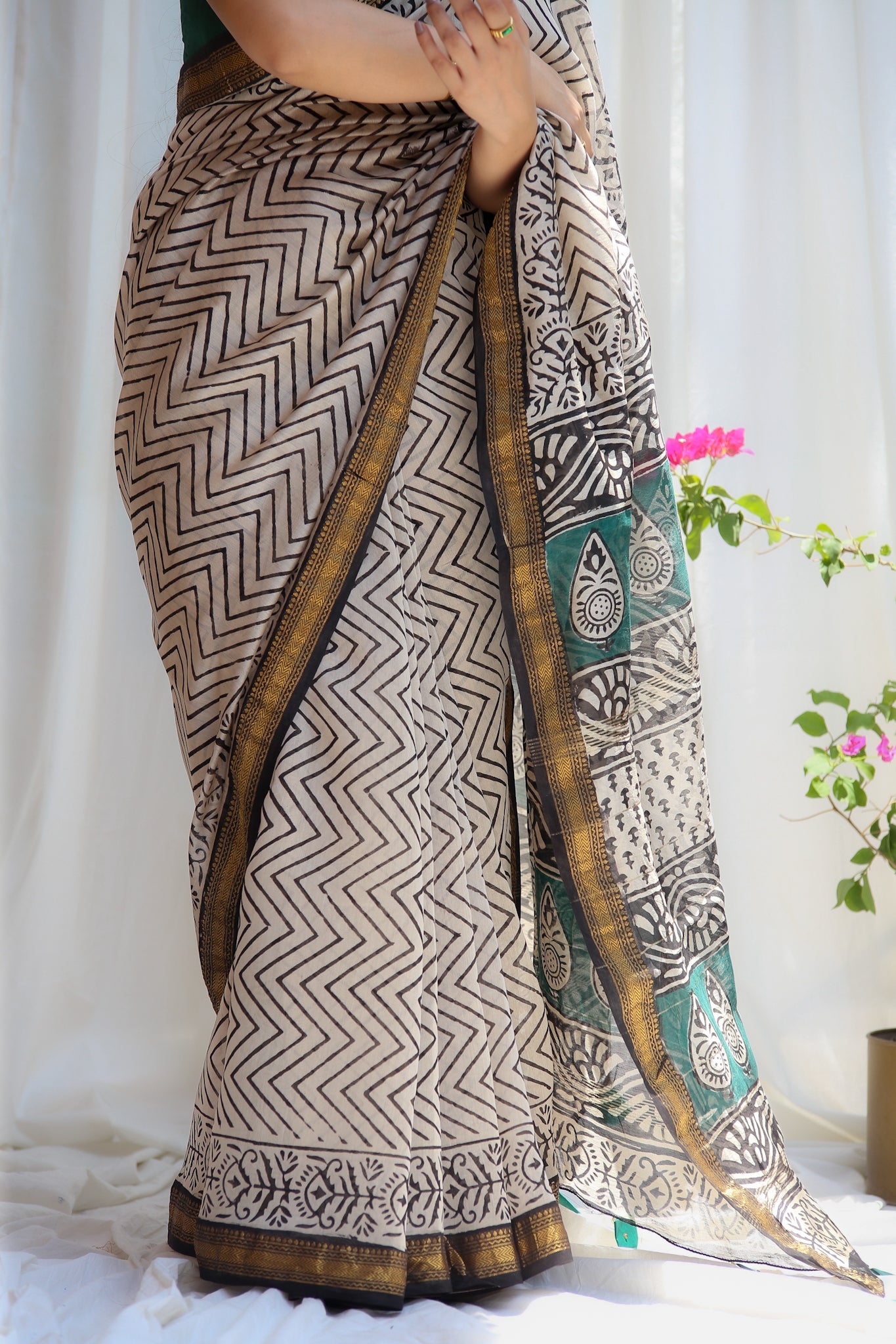 - Reversible Borders: One of the distinctive features of Maheshwari sarees, these borders add versatility to the saree, allowing it to be draped in multiple styles.